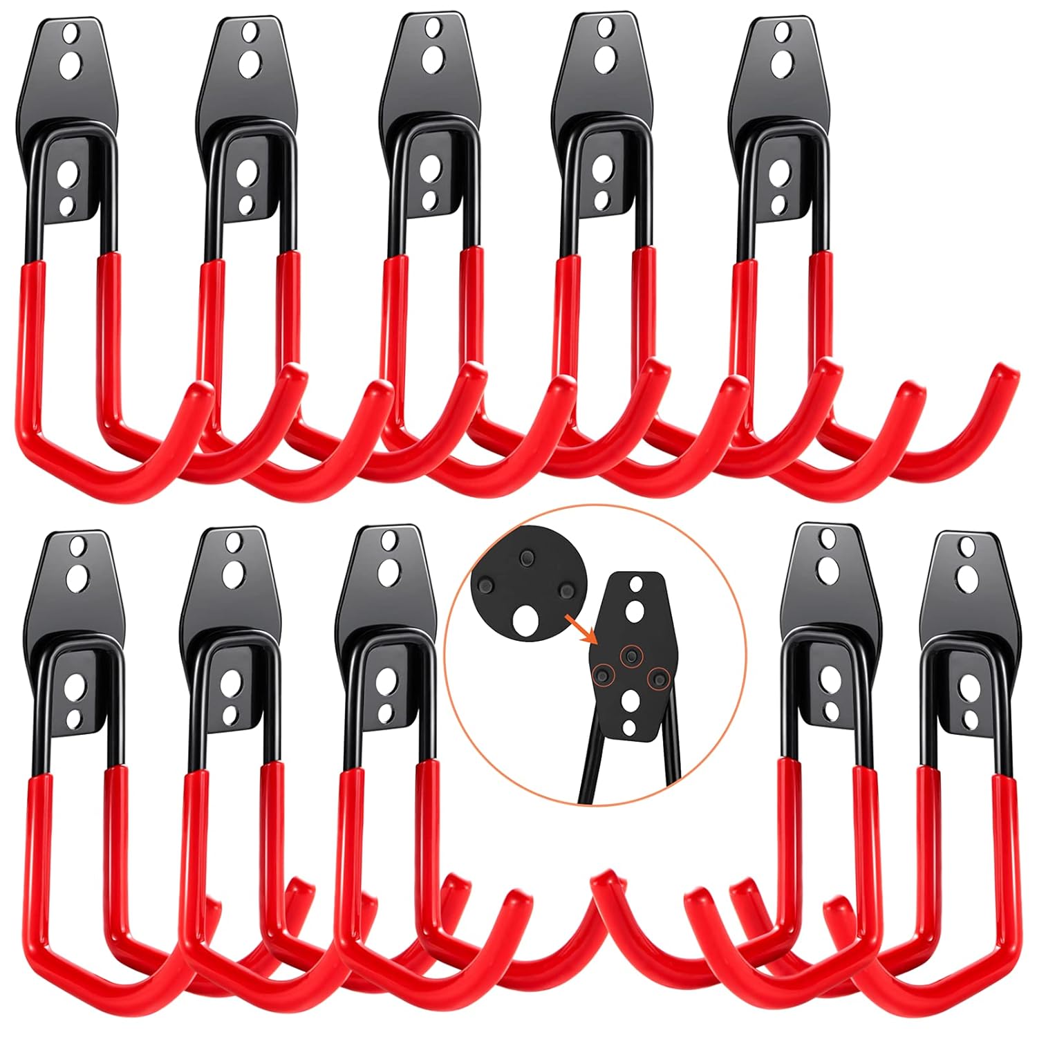 - PERFECT FOR HEAVY OBJECTS โGarage hooks is a set of 10 wall mounted double hooks,10 Big J hook . The extended length and anti-slip coating let you organise and hang heavy objects for up to 80lbs.