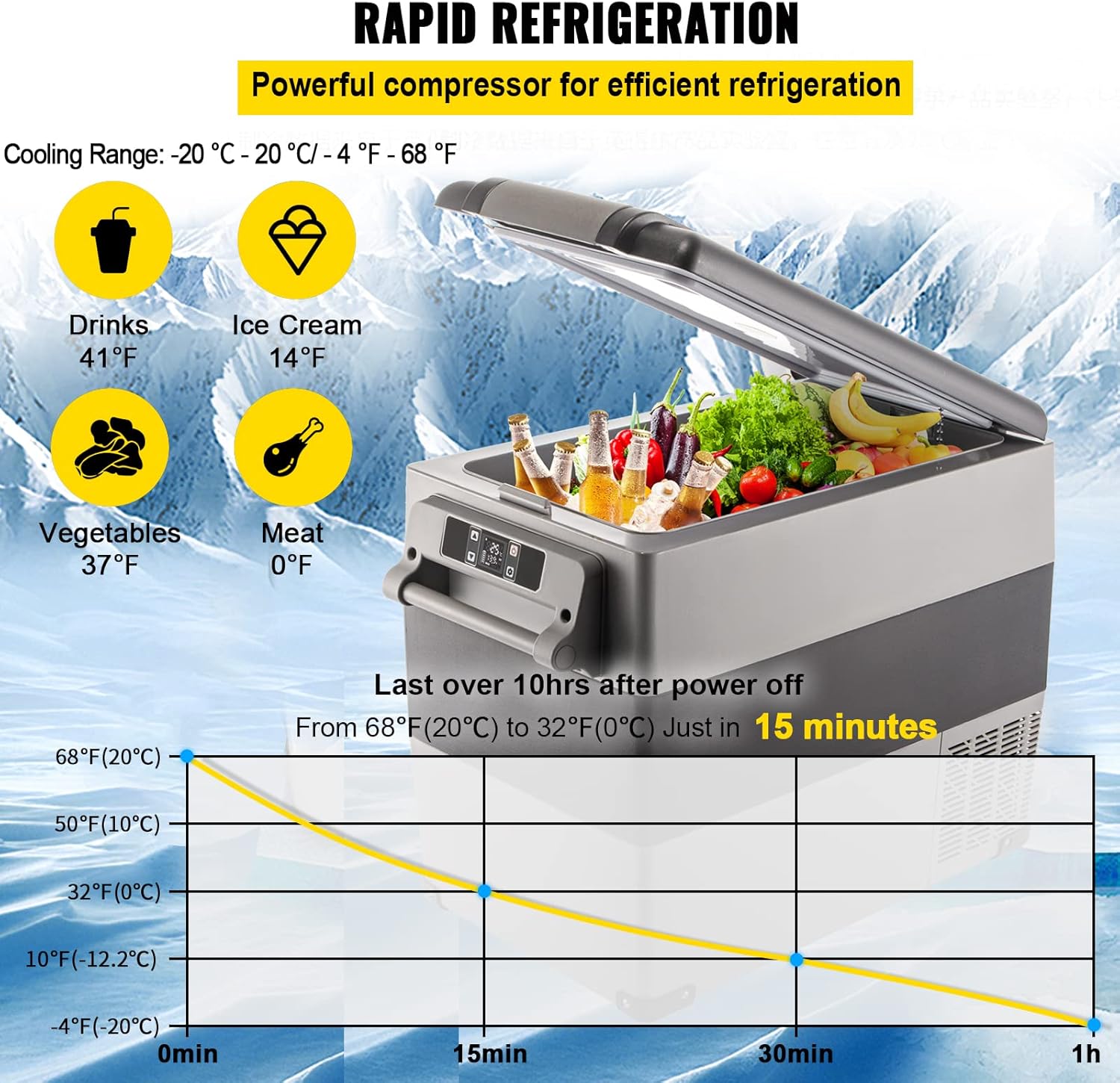 - Efficient Refrigeration: With Compressor refrigeration technology, this 12v car freezer could achieve fast cooling from -20β - 20 β/-4 β - 68 β, keeping your food fresh. Perfect for travel, picnic, barbecue, camping, and parties.