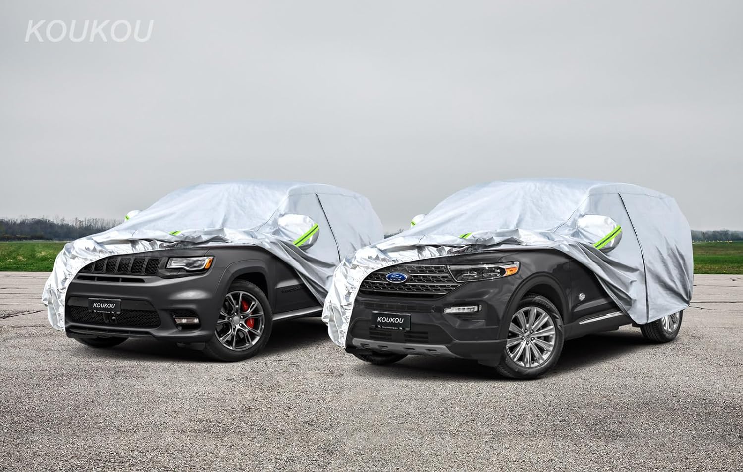 Koukou SUV Car Cover 100% Waterproof All Weather for Automobiles with Zipper Door, Universal Fit Ford Explorer, Jeep Grand Cherokee, BMW X5, Highlander, Etc.(190 to 201 inches)