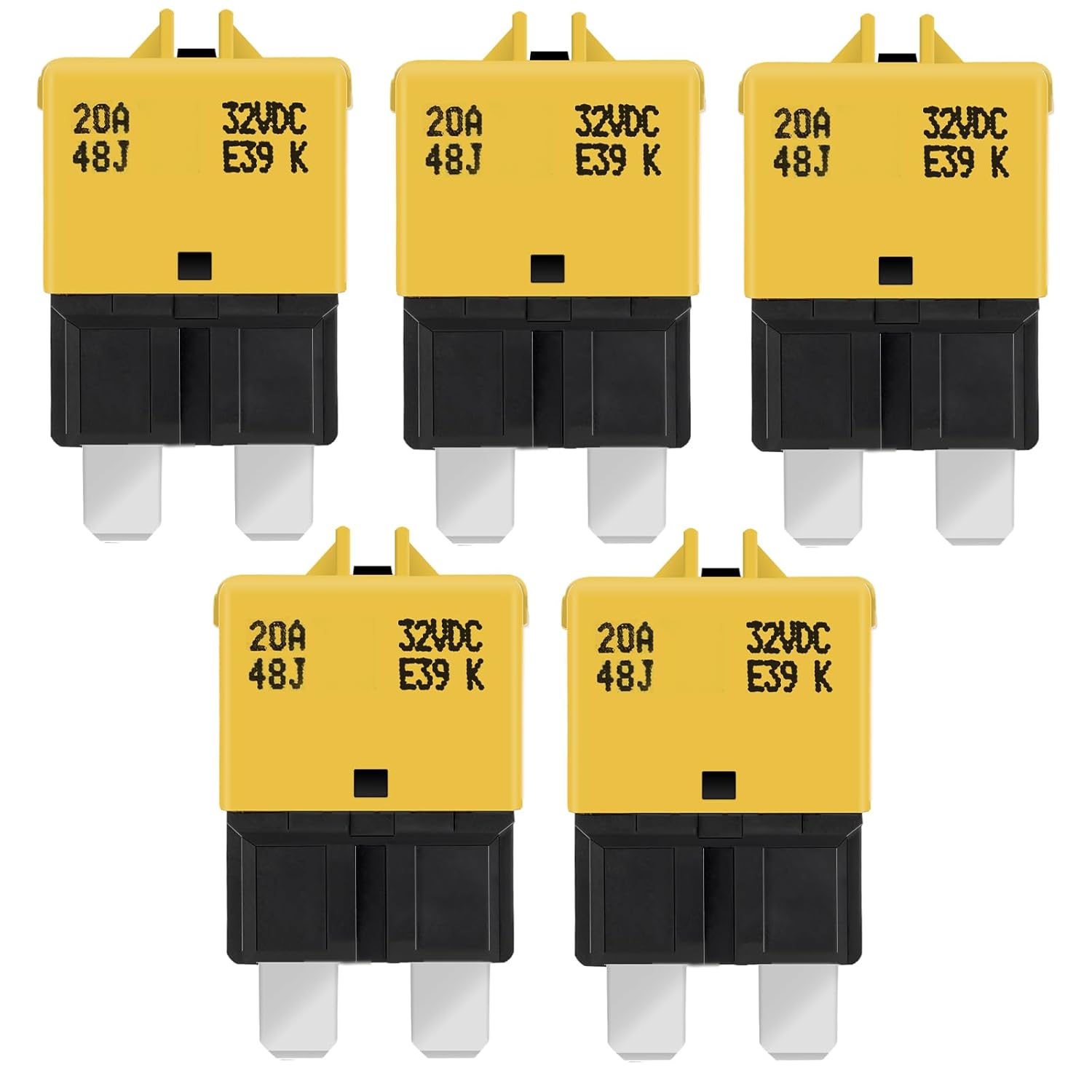 GLOSO Circuit Breaker Fuse E39 (T3) Manual Reset For Car Truck RV Automotive Marine Boat Trolling motor & Custom Wiring Audio battery protection/Low Profile ATC/ATO (20A - 5 Pack)