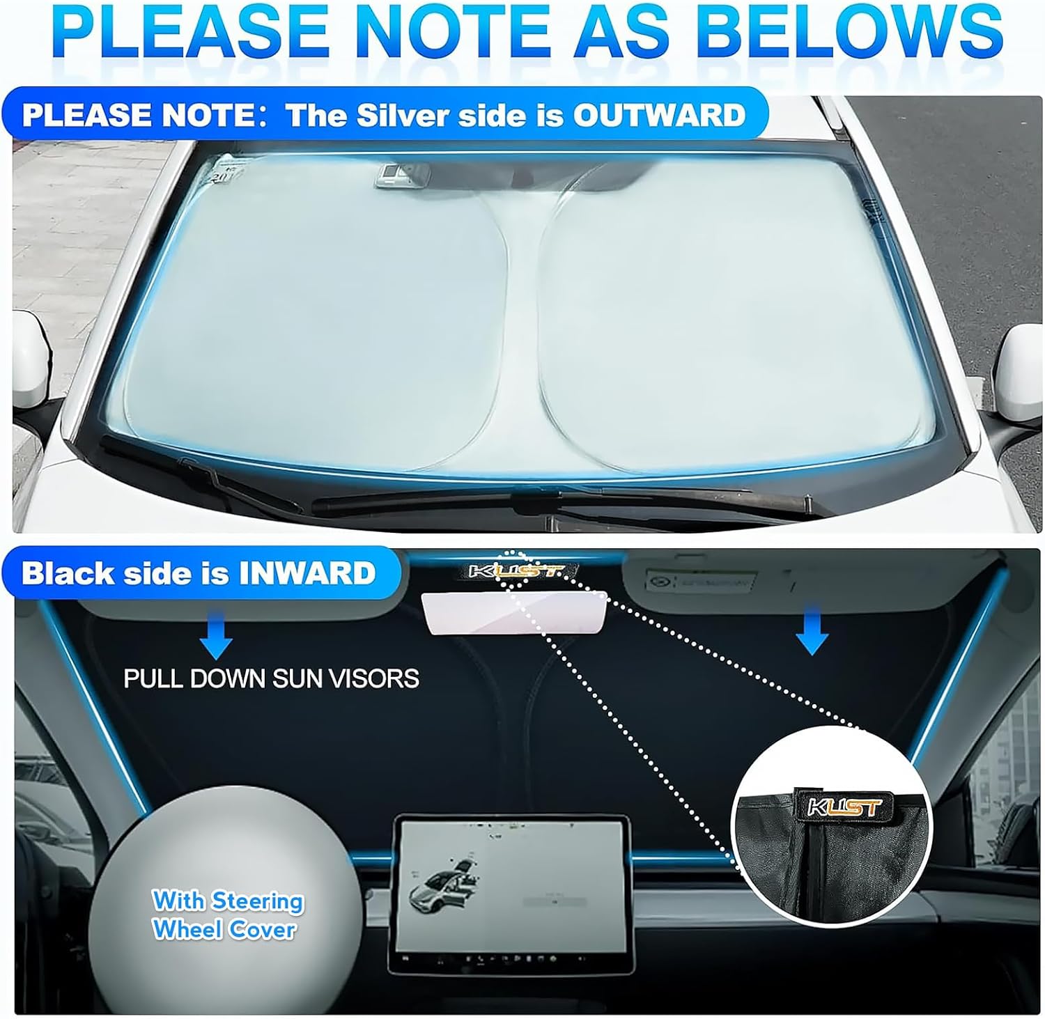 - 【Nice Fabric】Made of 250T Reflective Fabric, this material features higher density.Double-layer design including black heat insulation layers and silver reflective layers,providing better protection against Sun, blocks up to 99% of damaging UV rays and Heat build-up.(NOTE:The Silver side is OUTWARD,while Black side is INWARD.)
