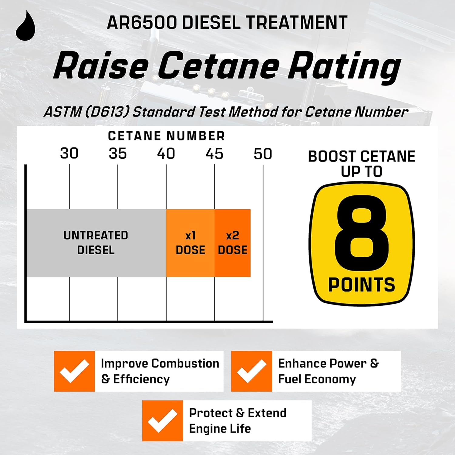 - Incorporates Archoil's proven combustion modifier technology and a strong cetane boost to increase power and response