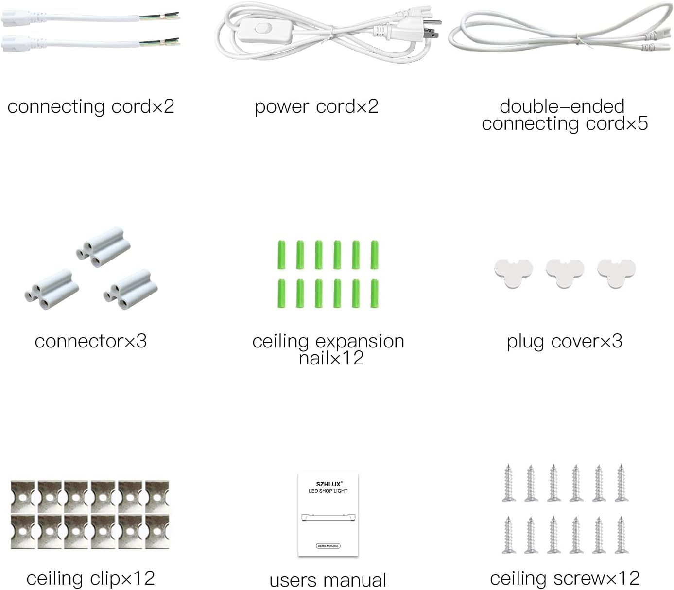 - [Scientific Design and Super Bright] - SZHLUX LED Utility shop light with an incredible minimum of 145lm/watt (Each light has 4350lm output). Trapezoid-Shape for larger luminous area than T5 and T8 led plant light, works extremely well in garage, basement and cabinet, etc.