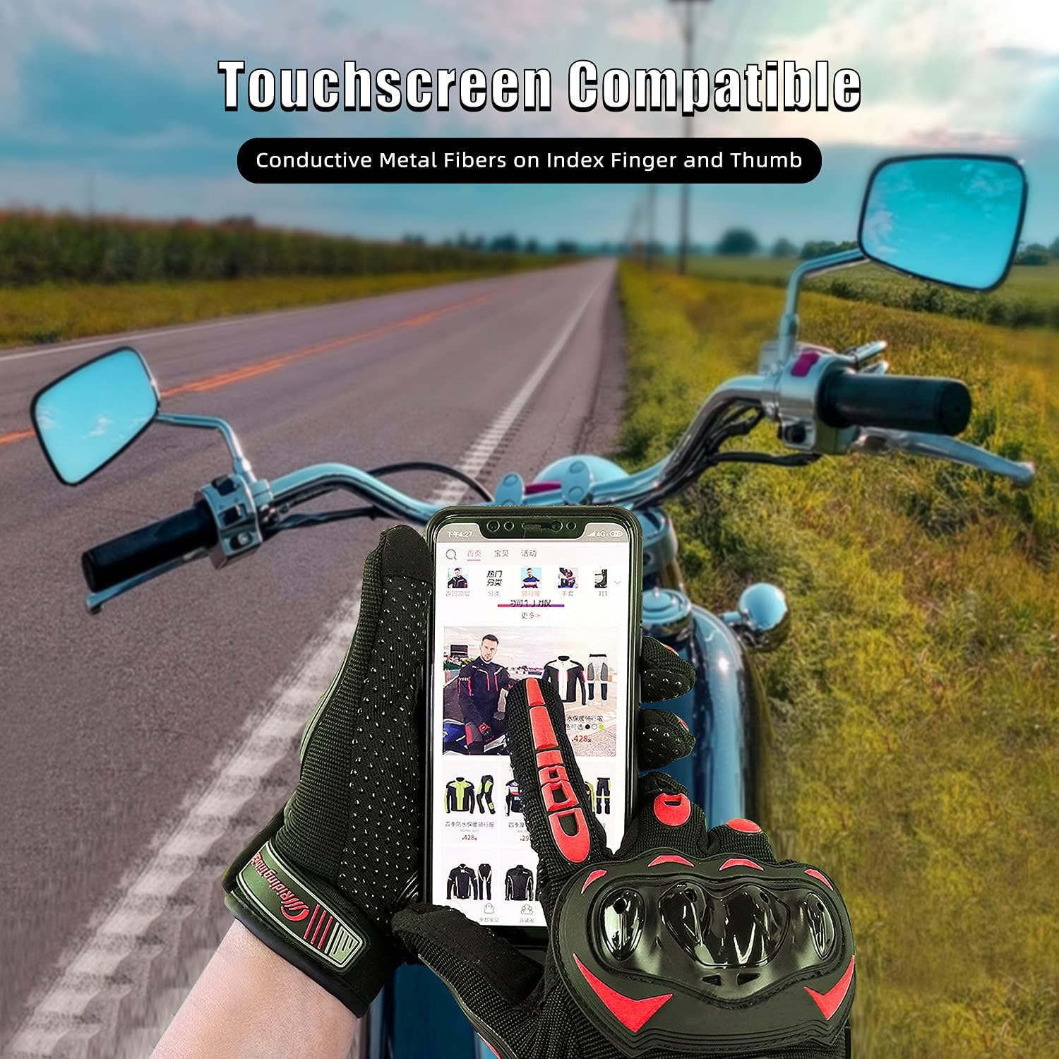 Motorcycle Gloves for Men and Women Full Finger Touchscreen Mountain Dirt Bike Gloves for Powersports BMX ATV MTB Driving Motocross Cycling Gloves(M, Red)