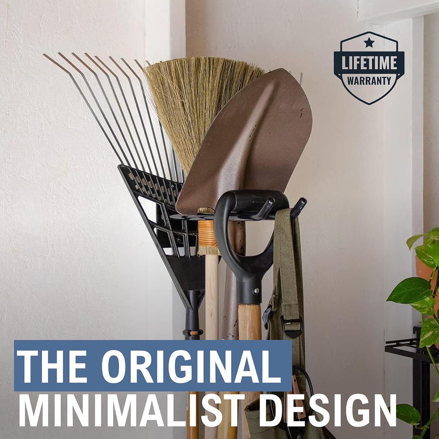 - Pro Garage Organization β The ultimate tool storage organizer for shovels, rakes, brooms, mops, power equipment, extension cords, garden hoses, and much more. Each rack measures 12" x 4" x 4.5".