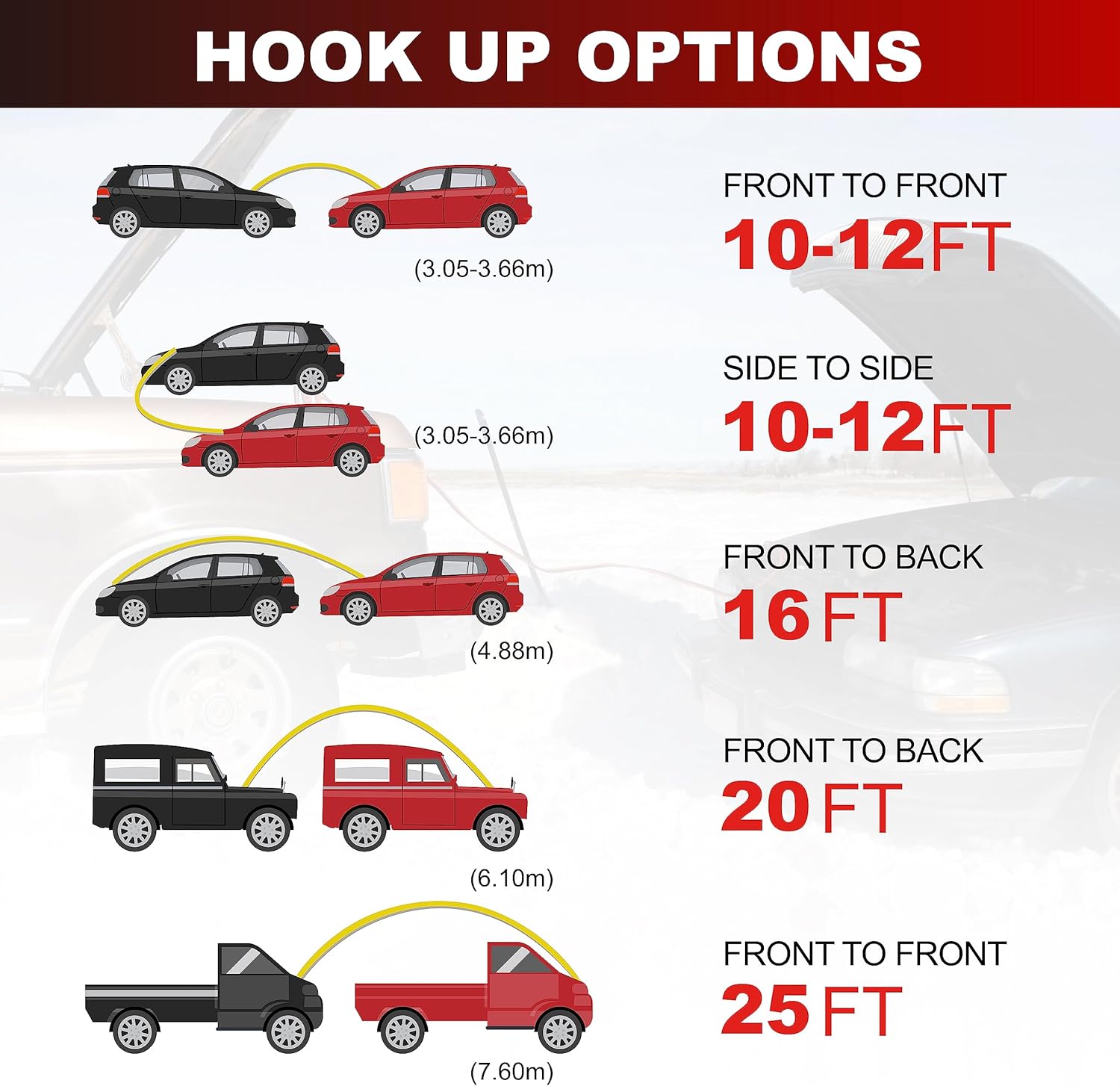 - AWELTEC 20 Feet length makes it easy to reach from one car battery to another, unique Design clamps suitable for various cars and connection ways.