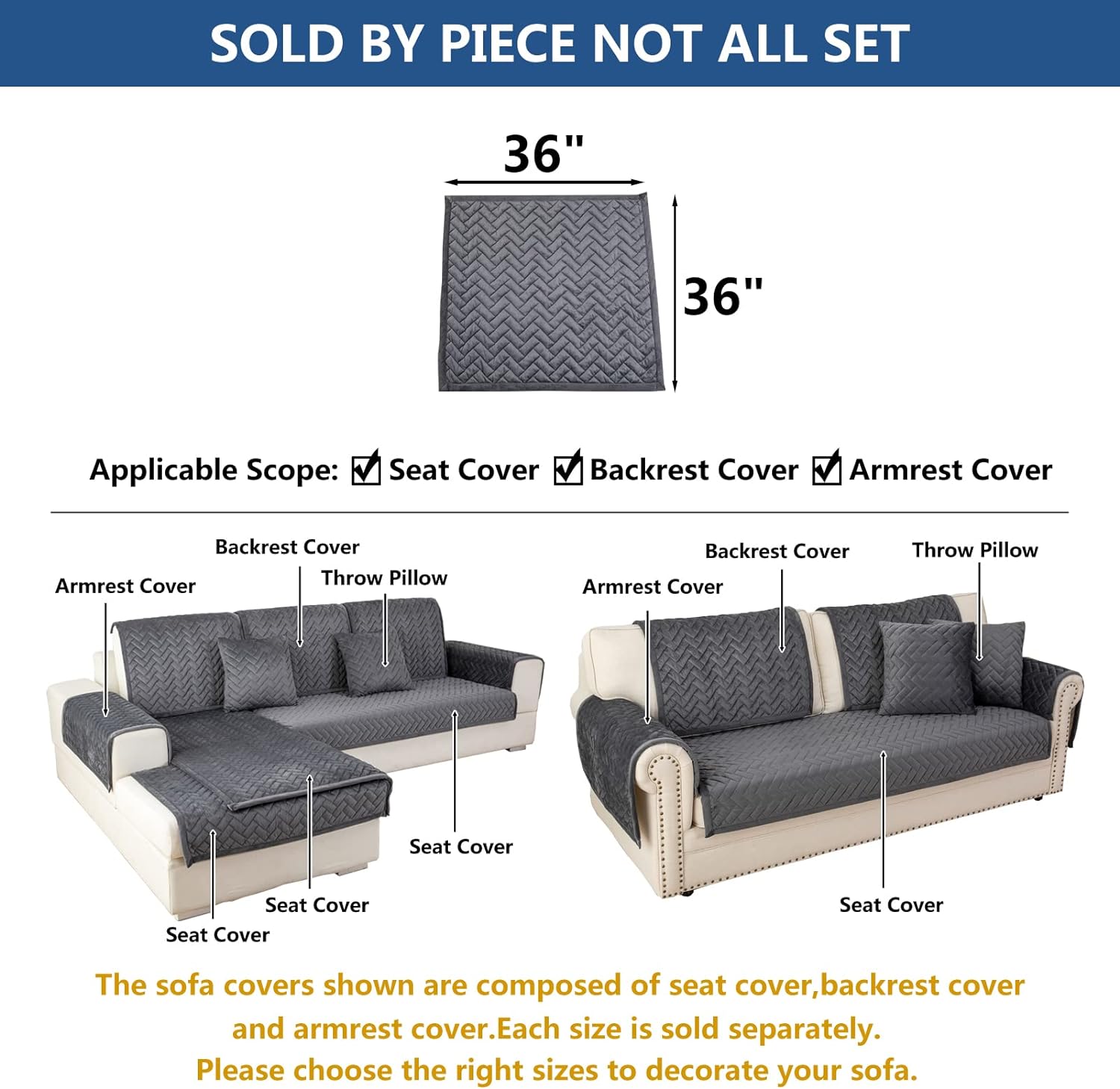 Eismodra Couch Cover,Sectional Couch Covers,Sofa Covers for 3 Cushion Couch,Anti-Slip Sofa Slipcovers for Dogs Cats Kids Loveseat Recliner L Shaped Armrest Backrest,Dark Gray 36''x36''(Only 1 Piece)