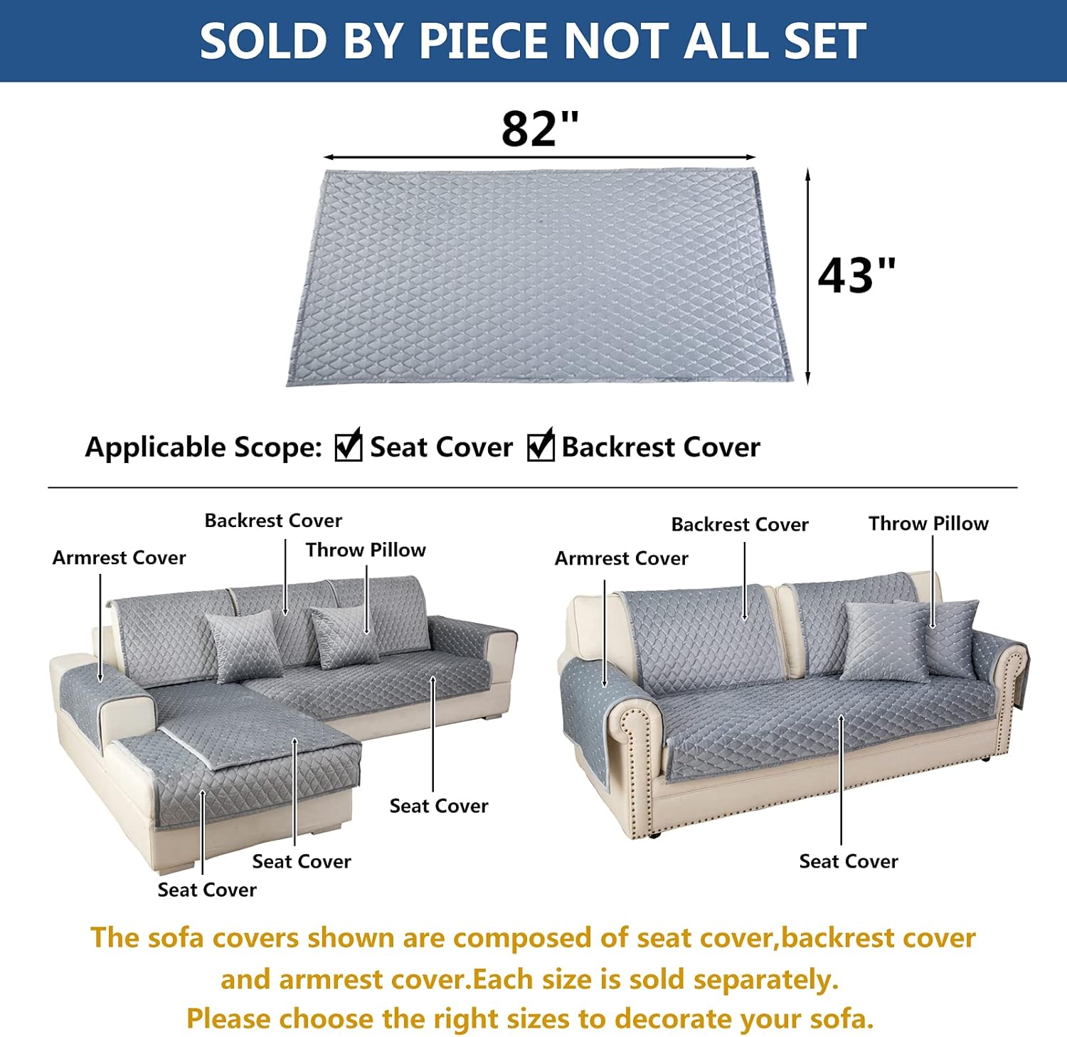 Eismodra Couch Cover,Sectional Couch Covers,Sofa Covers for 3 Cushion Couch,Anti-Slip Sofa Slipcovers for Dogs Cats Kids Loveseat Recliner L Shaped Armrest Backrest,Light Gray 43''x82''(Only 1 Piece)