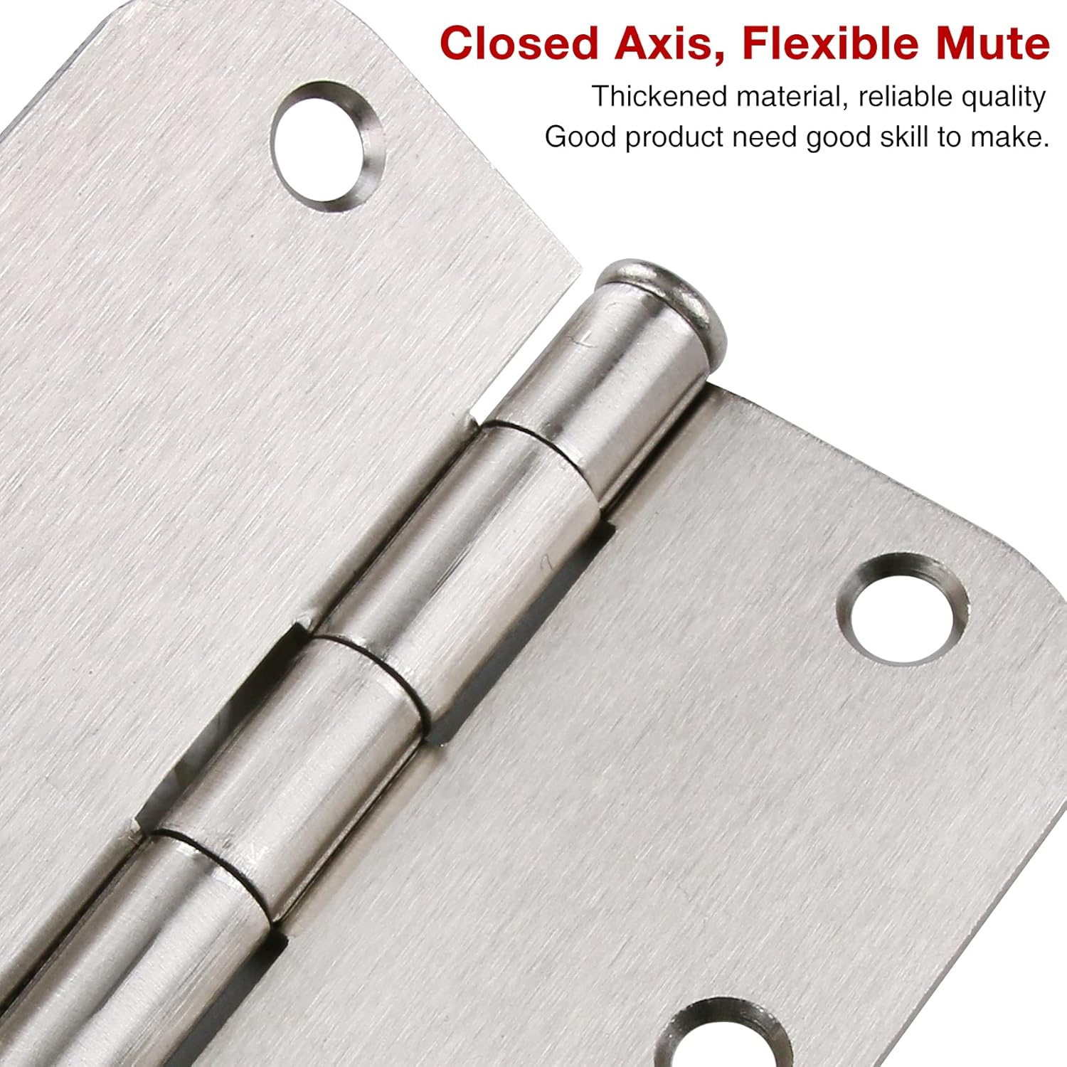 - Nickel door hinges 3.5" rounded corners with 6 holes for front door, cabinet, wooden box. Plain bearing hinges is including 600 free screws for quick and easy installation. It can be rotated 270 degrees.