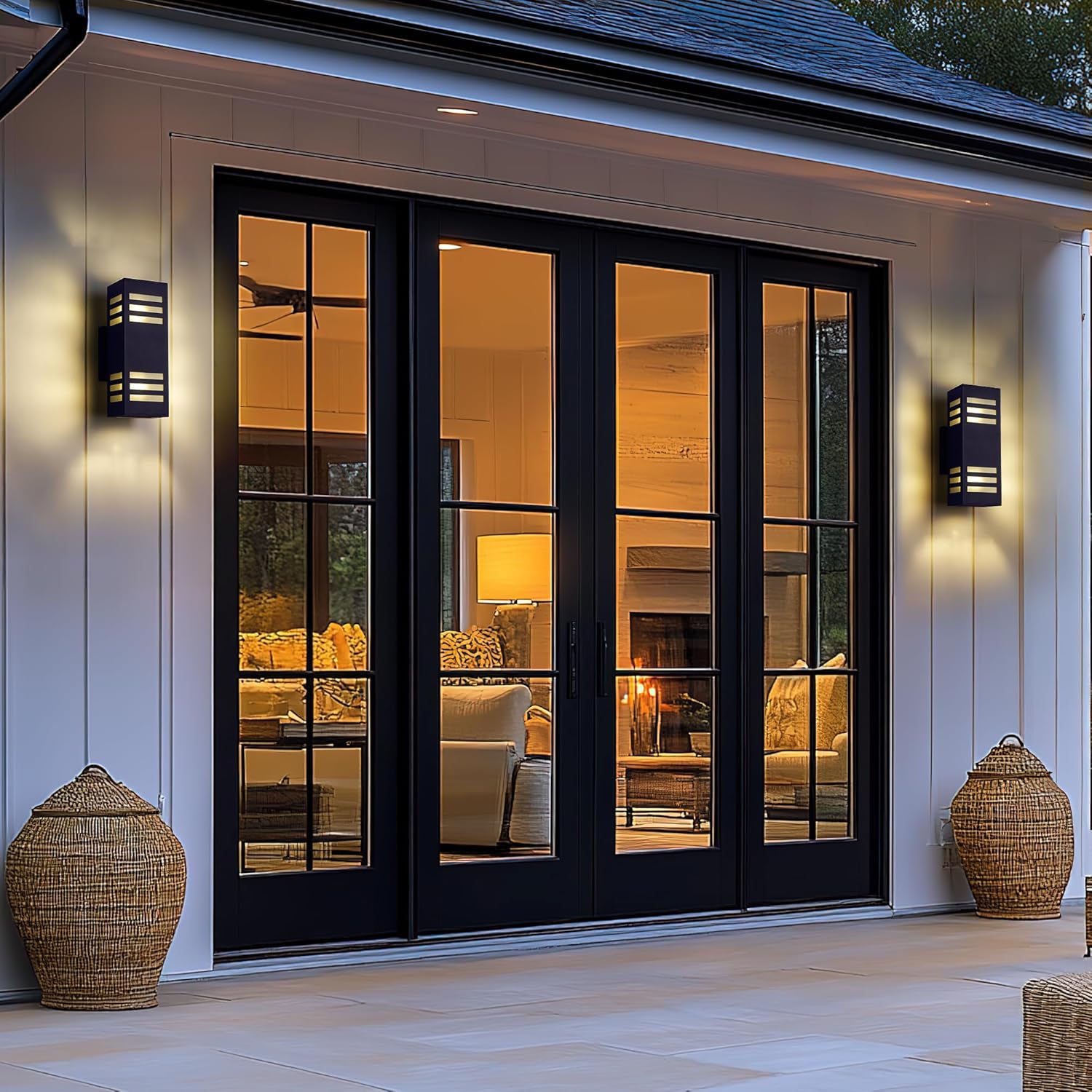 - Modern Rectangular Design: The exterior lighting fixtures feature a sleek, casts soft upward/downward illumination, Sanded matte black finish complements modern farmhouse & beach houses exteriors, ideal for entry gates, garage, pathway