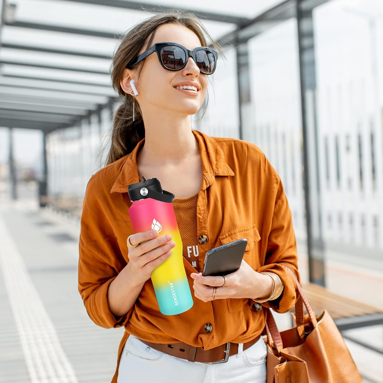 - 【FUNCTIONAL DESIGN】32oz(946ml)insulated water bottle fit any standard car cup holder comes with The non-slip layer of Powder Coating ensures you hang on to your bottle during a work out, hike or yoga.Various colors SENDESTAR is good for people of all ages and perfect companion for all activities.