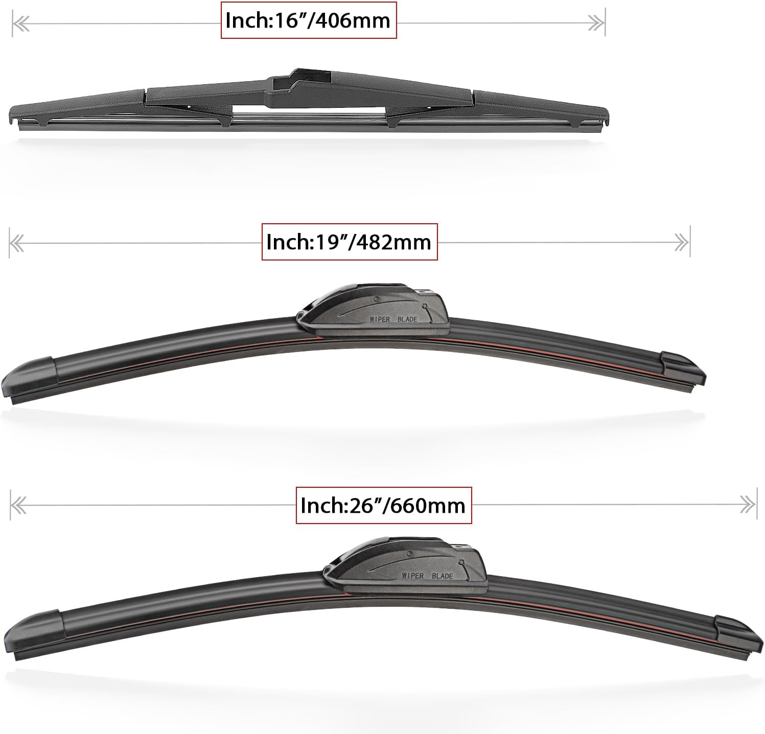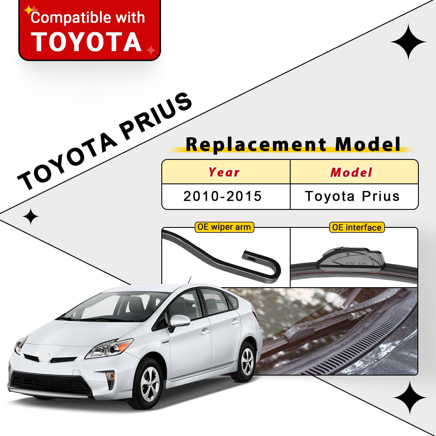 - {FITMENT}: Replacement for 2010 2011 2012 2013 2014 2015 Toyota Prius 26inch + 19inch front with 16inch rear windshield wiper blades.