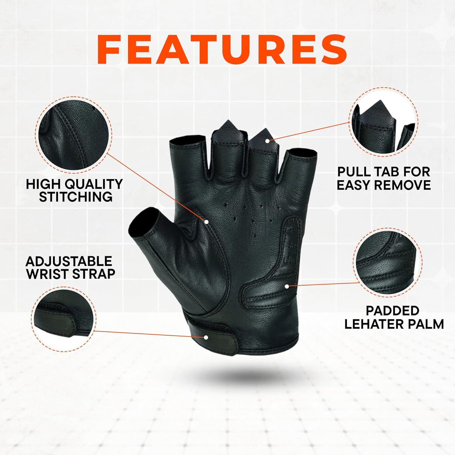 • Multipurpose Leather Gloves: These leather fingerless gloves will keep your hands safe in every situation and are ideal for Your Outdoor hobbies like Motorcycling, Cycling, Riding, Paintball, Rock Climbing, Mountain Camping, Hiking, and Outdoor Work.