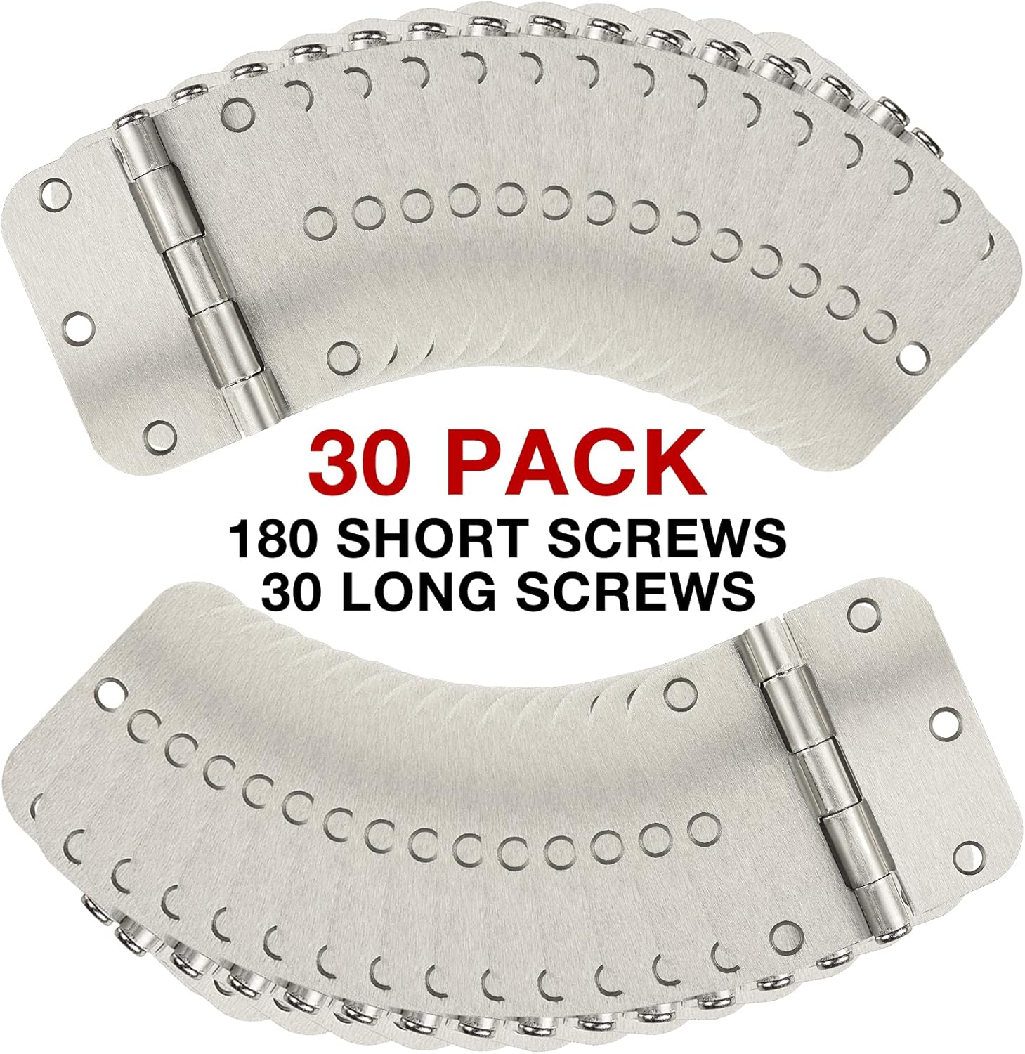 - For all kinds of outdoor buildings such as sheds, playhouses, animal shelters and more.Total Brushed Nickel Door Hinges: 24 Pack + 6 Pack = 30 Packs.