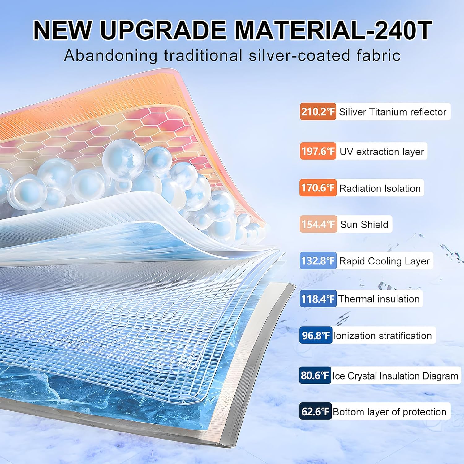 - 【Keep Your Vehicle Cool】Double-layer 240T high-density base fabric and premium polyester fiber design for maximum protection for your vehicle's interior. Avoid sun heat exposure that causes aging interior and prevent sun heating your vehicles seats,dashboard and other electronic devices to crack and fade, helps keep the vehicle in the best resale condition for years.