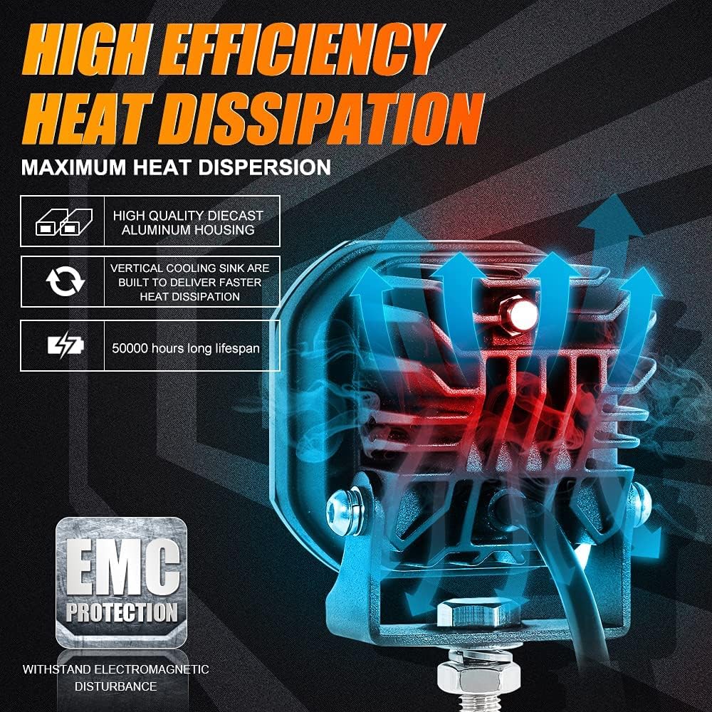 - 【New TIR Optical Design】 3 inch led cube lights use innovative TIR technology (Total Internal Reflection), which not only enables the beam to reach a high focus range but also dramatically improves the lighting efficiency, reducing glare, emitting more brightness than normal LED lights under the same power.