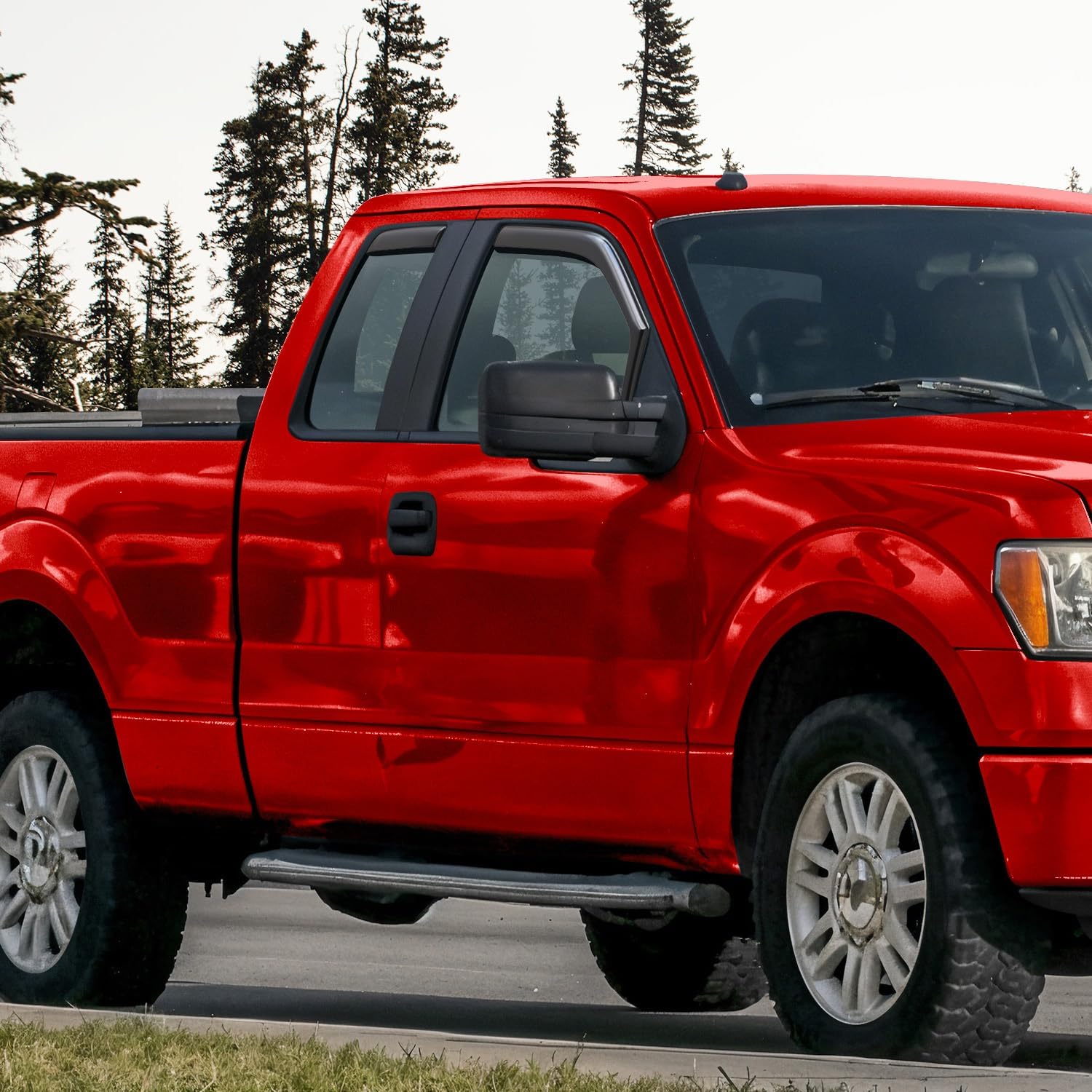 - Full-size Side Window Deflectors โ This 4-piece set includes passenger and driver side rain guards that create a seamless look that protects you from sun rays, rain drops, and wind while youโre driving with the window down.