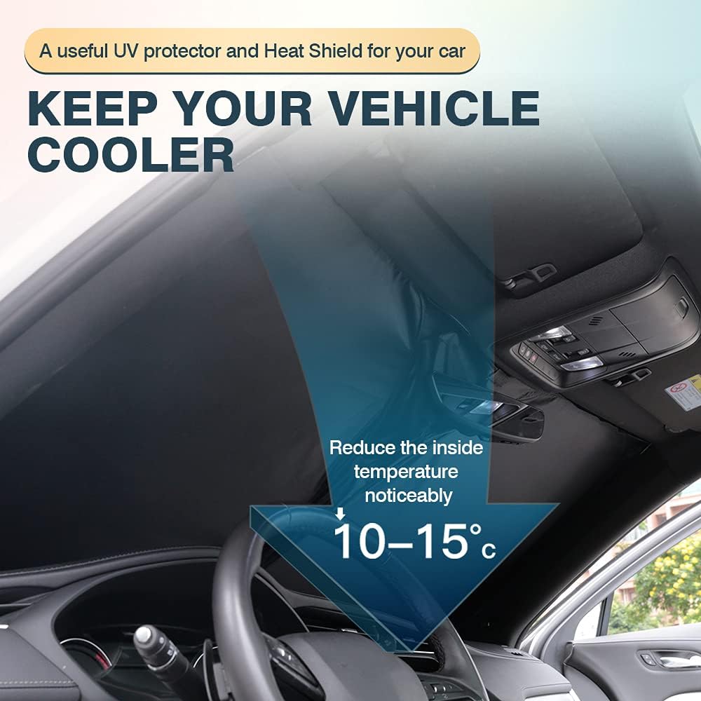 - Highly Reflective Protection -- The Mustang Mach-e sun shade will provide maximum protection for your car interior by blocking 99% of UV rays and sunlight. Not only protect the dashboard from fading and cracking, but also protect people skin by blocking the harmful UVA. Offering you a cool environment by lower the temperature by 50-59Β°F.