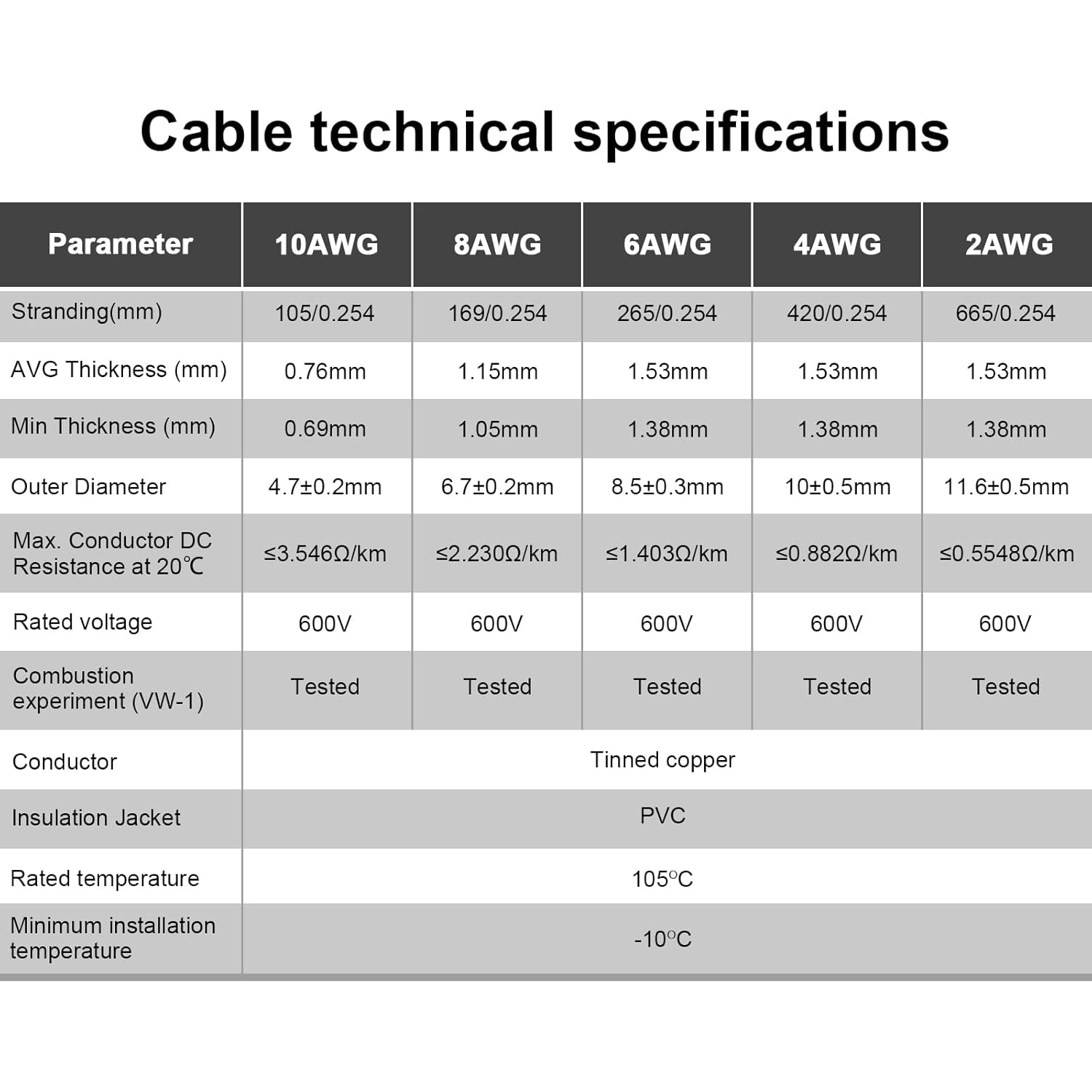 - UL1015 Listed: Tinned Copper 6 AWG Cable, 265 strands 0.254 mm tinned copper wire, protecting them from corrosion, and easy to solder.