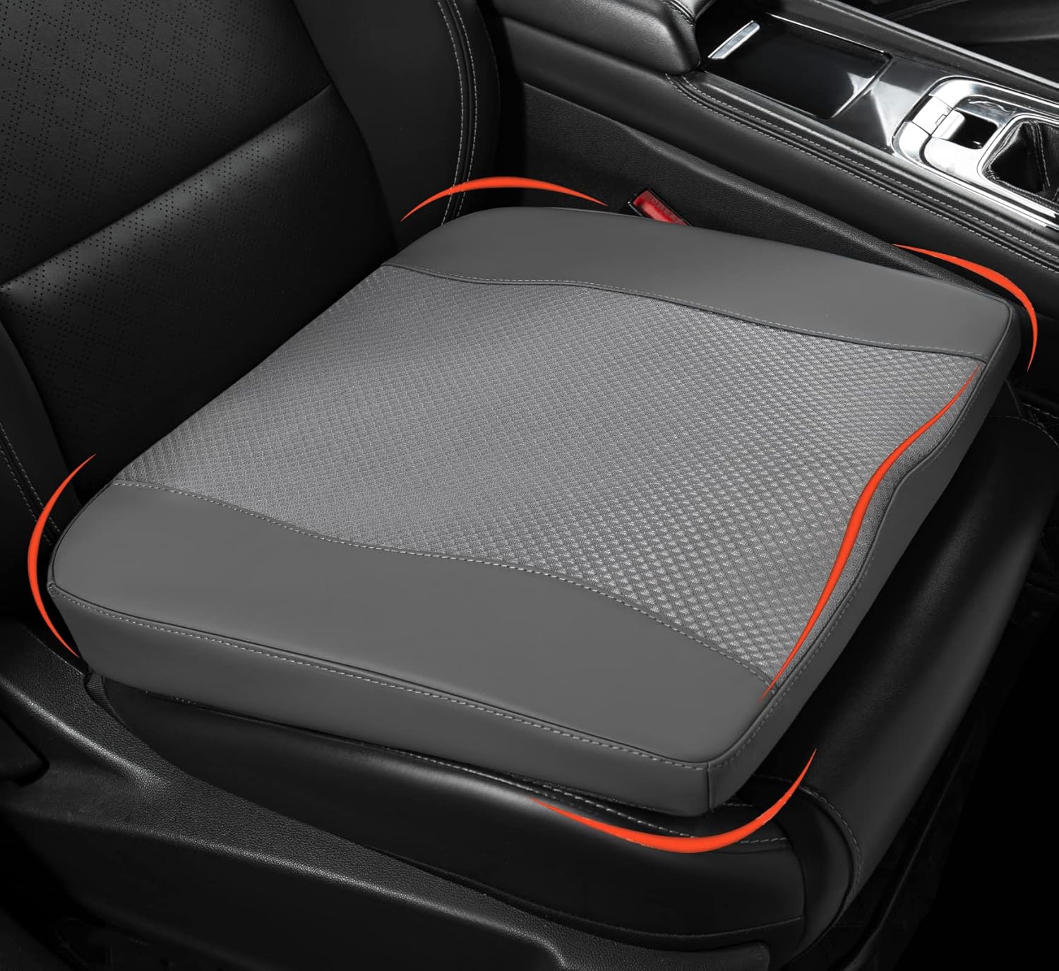 - ADDS HEIGHT BY 2.5 INCHES β Allows for increased vision of the front of your car and the road thanks to the car cushions for driving providing an additional 2.5β in height. Non-slip base keeps the car cushion firmly in place