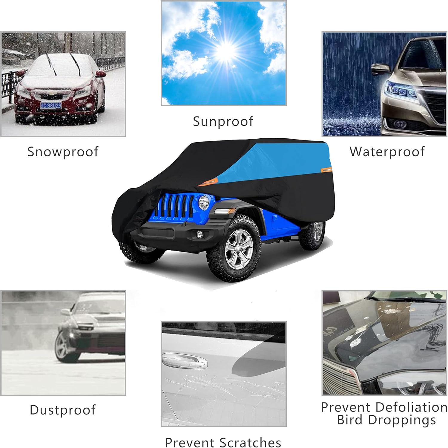MORNYRAY Compatible with Jeep Wrangler 4 Door, Waterproof Car Cover All Weather Snowproof UV Protection Windproof Outdoor Full car Cover, Universal Fit for (Wrangler 4Door, Blue)