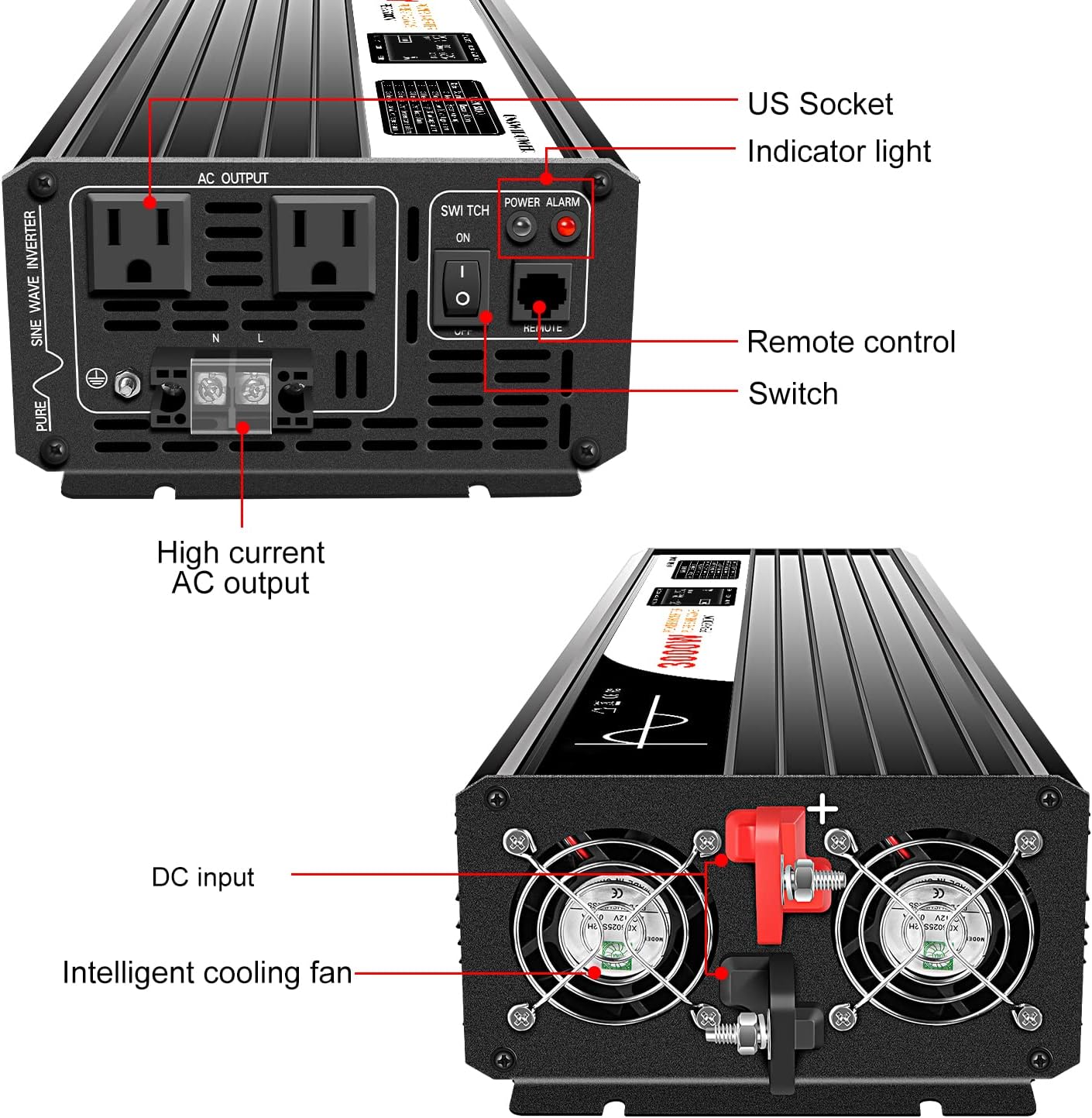 - 【XIJIA Power Inverter】Provides clean pure sine wave 3000W DC 12V to AC 120V continuous power.Much better than Mod(modified) sine wave. True pure sine wave inverter can provide high quality and stable output power, Less wear to protect your AC equipment more stable.It's recommended by most cordless tool manufacturer that a pure sine wave inverter is used to ensure long battery life.