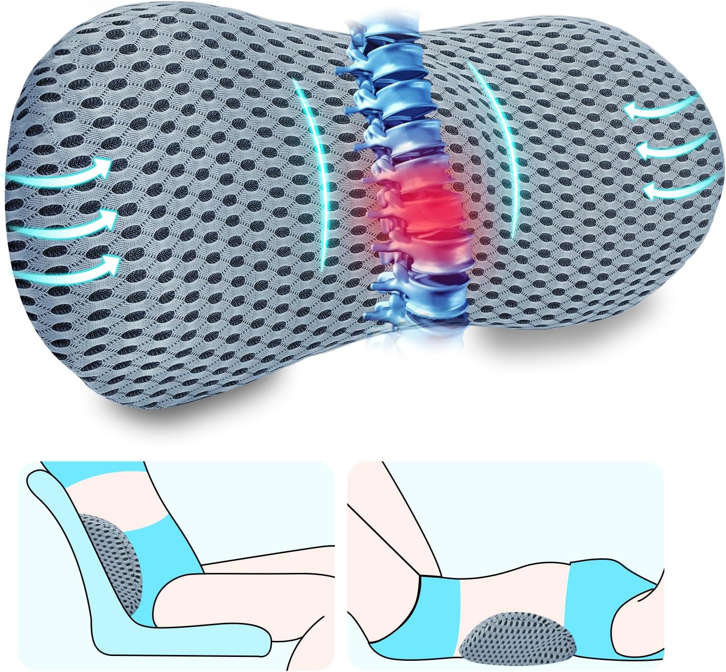 Lumbar Support Pillow, Memory Foam Back Support Pillow for Office Chair, Car Seat, Gaming Chair, Recliner and Bed, Neo Cushion for Low Back Pain Relief (Mesh, Gray)