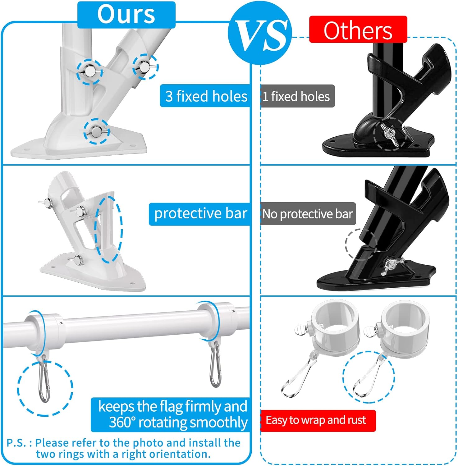- Exquisite Design: 2*Flag Poles Diameter 1'', 2*Upgraded Brackets, 4*New Tangle Free Rings, 6*Carabiners, 2*Top Balls, 1*Installation Manual