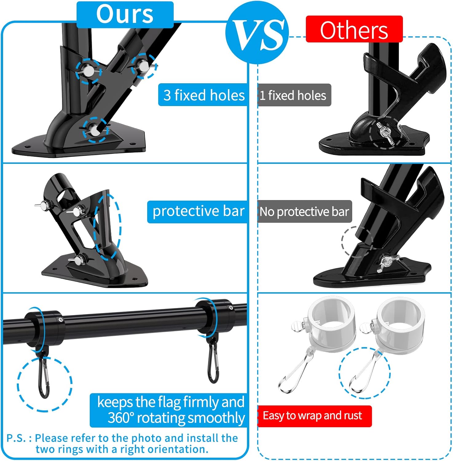 - Exquisite Design: 2*Flag Poles Diameter 1'', 2*Upgraded Brackets, 4*New Tangle Free Rings, 6*Carabiners, 2*Top Balls, 1*Installation Manual