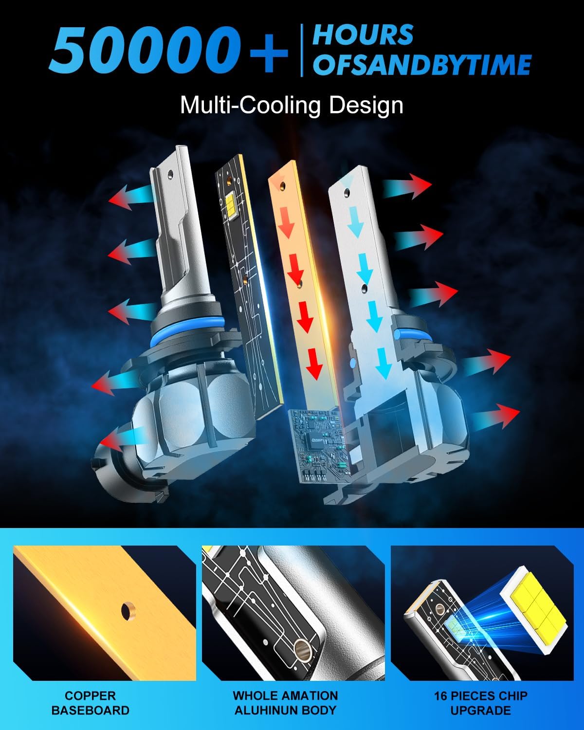- 【Refuse to Frequent Replacement】 The whole aviation aluminum body and hollow-carved heat sink design of H10 LED bring superior cooling capacity, which ensures a longer lifespan of up to 50,000 hours. Greatly reduce the frequency of your bulb replacement, save your buck and time.