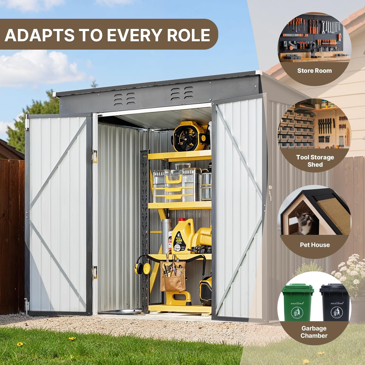 - 【Multifunctional Outdoor Storage Shed】This large metal shed is ideal for a range of outdoor spaces like backyards, patios, and gardens. Use it to store mowers, power tools, bicycles, or even as a pet shelter that’s warm, ventilated, and safe in any weather. It can also double as a backyard garbage room to keep waste organized and your space neat.
