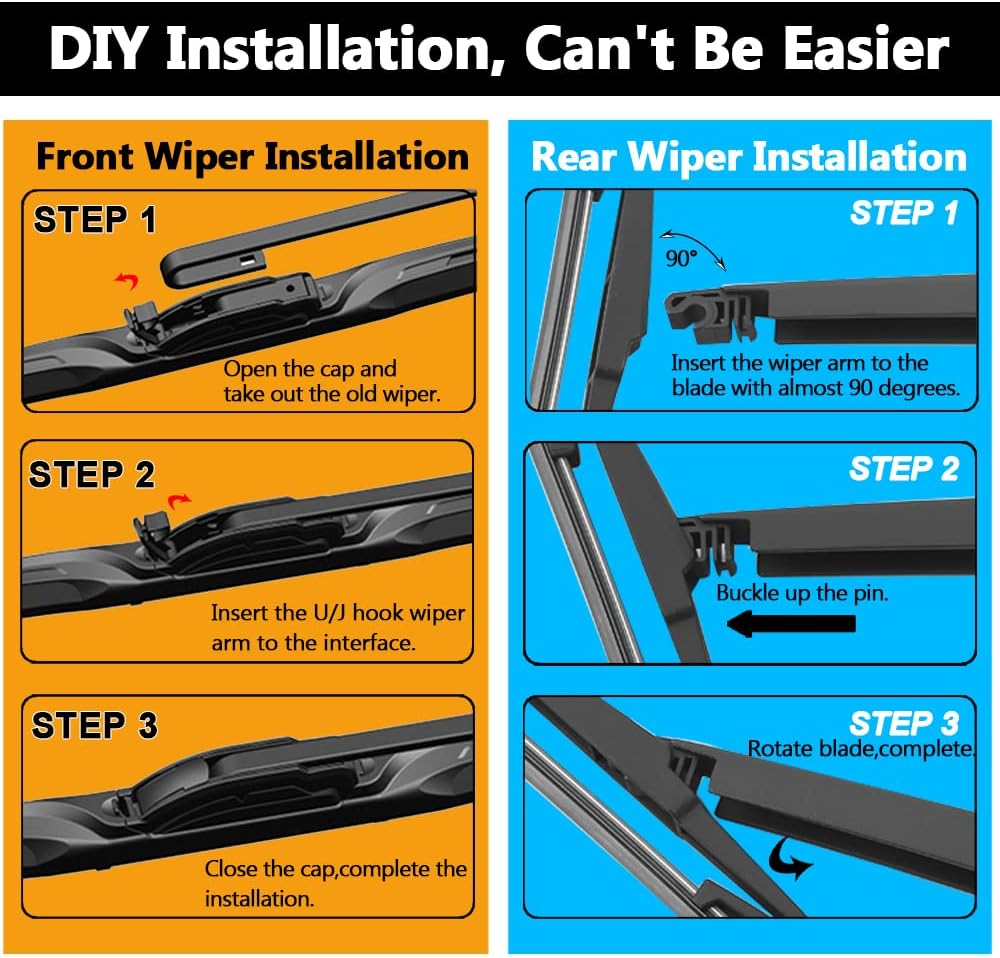 - EASY-TO-INSTALL: Quick and easy to install. fit perfect to your car, like the original parts. Itโs installed to the wiper arm by means of J/H.
