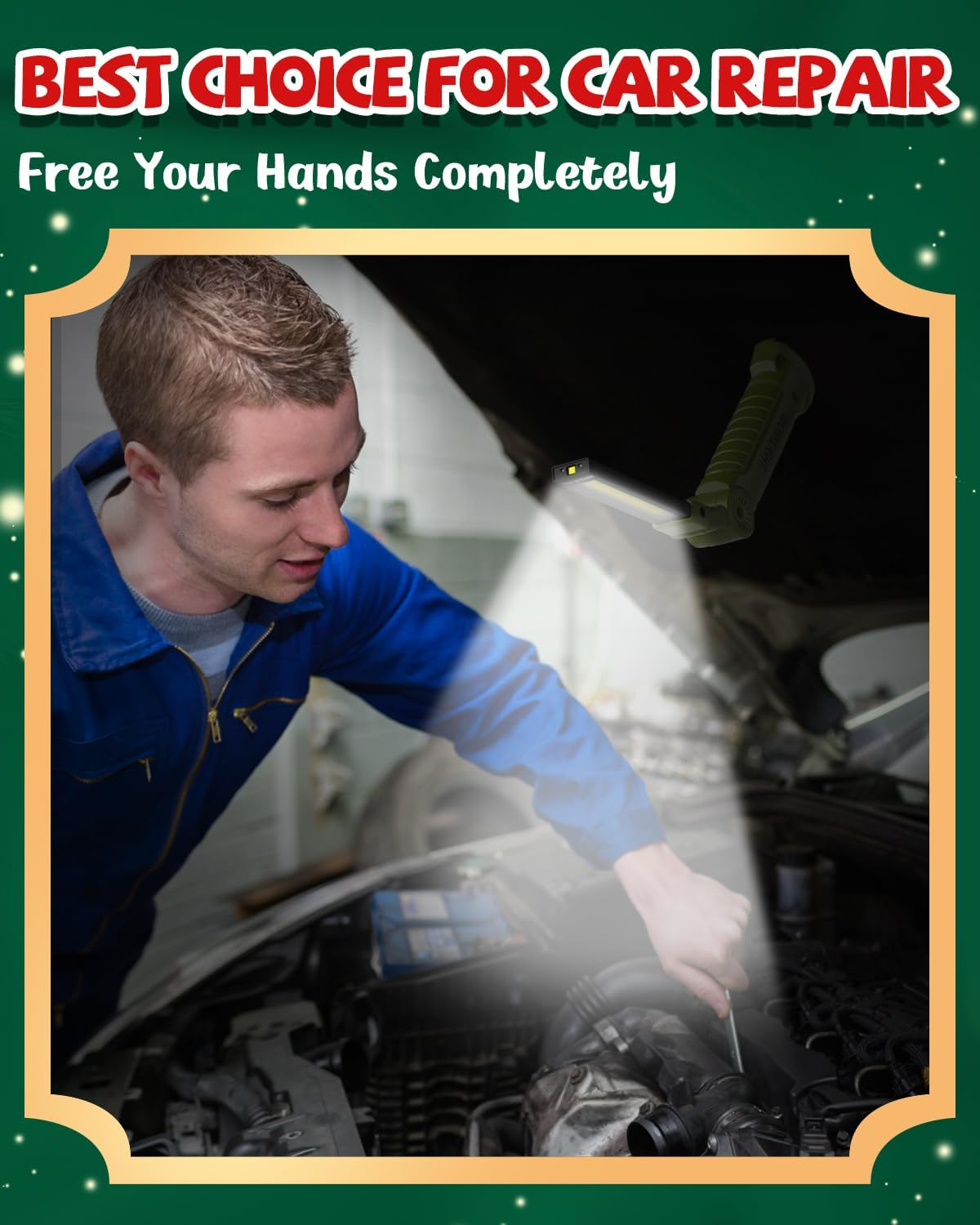 Coquimbo Tool Gifts for Men Him, Rechargeable LED Work Light Grill Light with Magnetic Base and Hook 5 Modes 360° Rotate Mechanic Light Birthday Gifts for Dad Husband Men (2 Pack Green)
