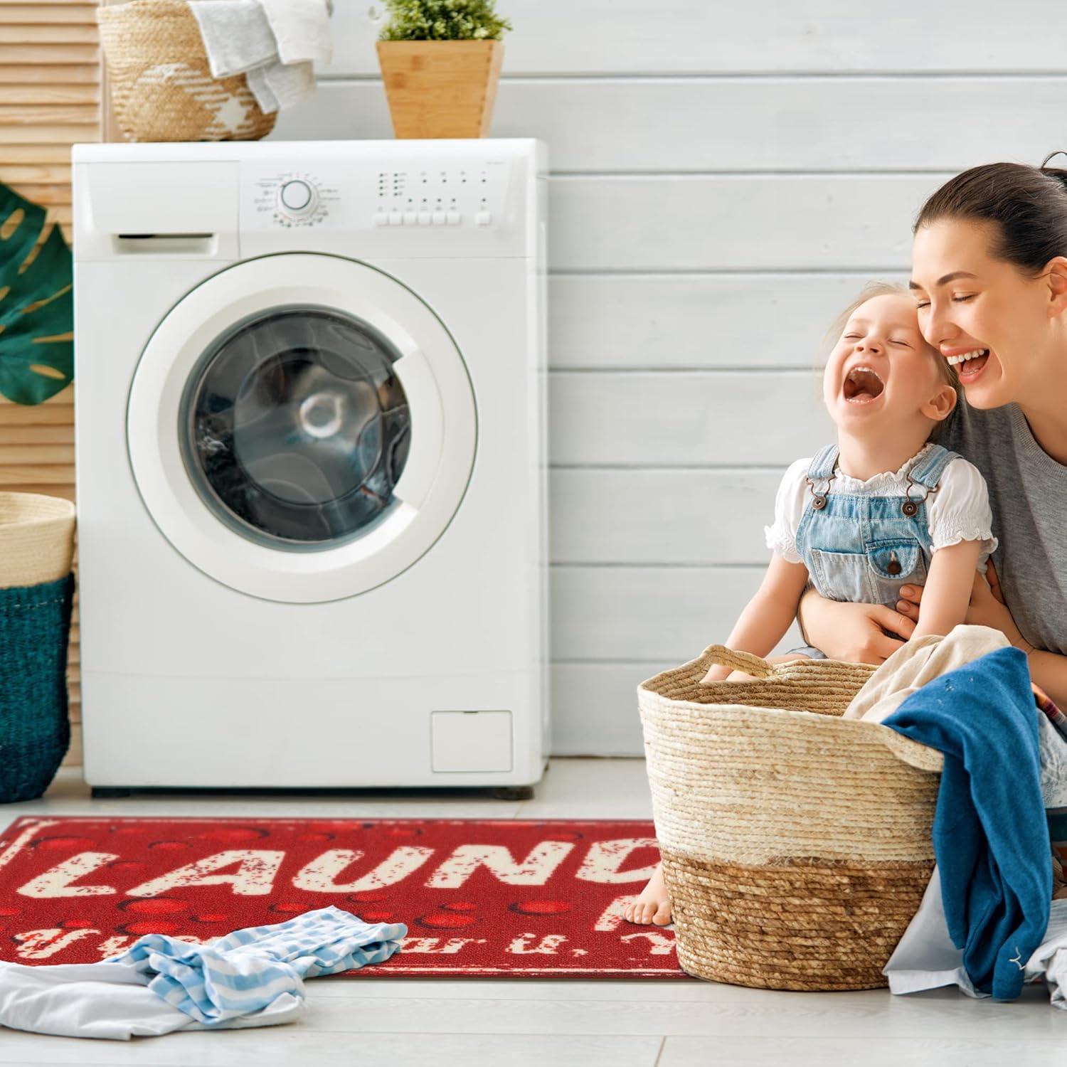 Ottomanson 20" x 59" Laundry Room Rug - Non-Slip Mat for Laundry & Mudroom - Durable, Stain-Resistant, and Easy to Clean - Perfect for High-Traffic Areas - Runner Rug for Entryway Bathroom, Red