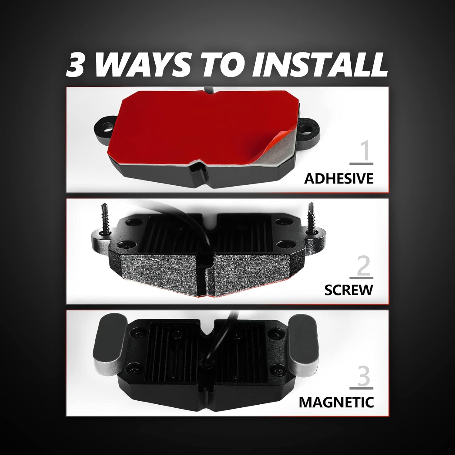 - [Multi-color & modes] Magnetic RGB Color Changing LED Rock Lights with 12 colors to fit your desire. Equipped with 8 speed and 19 modes to select.