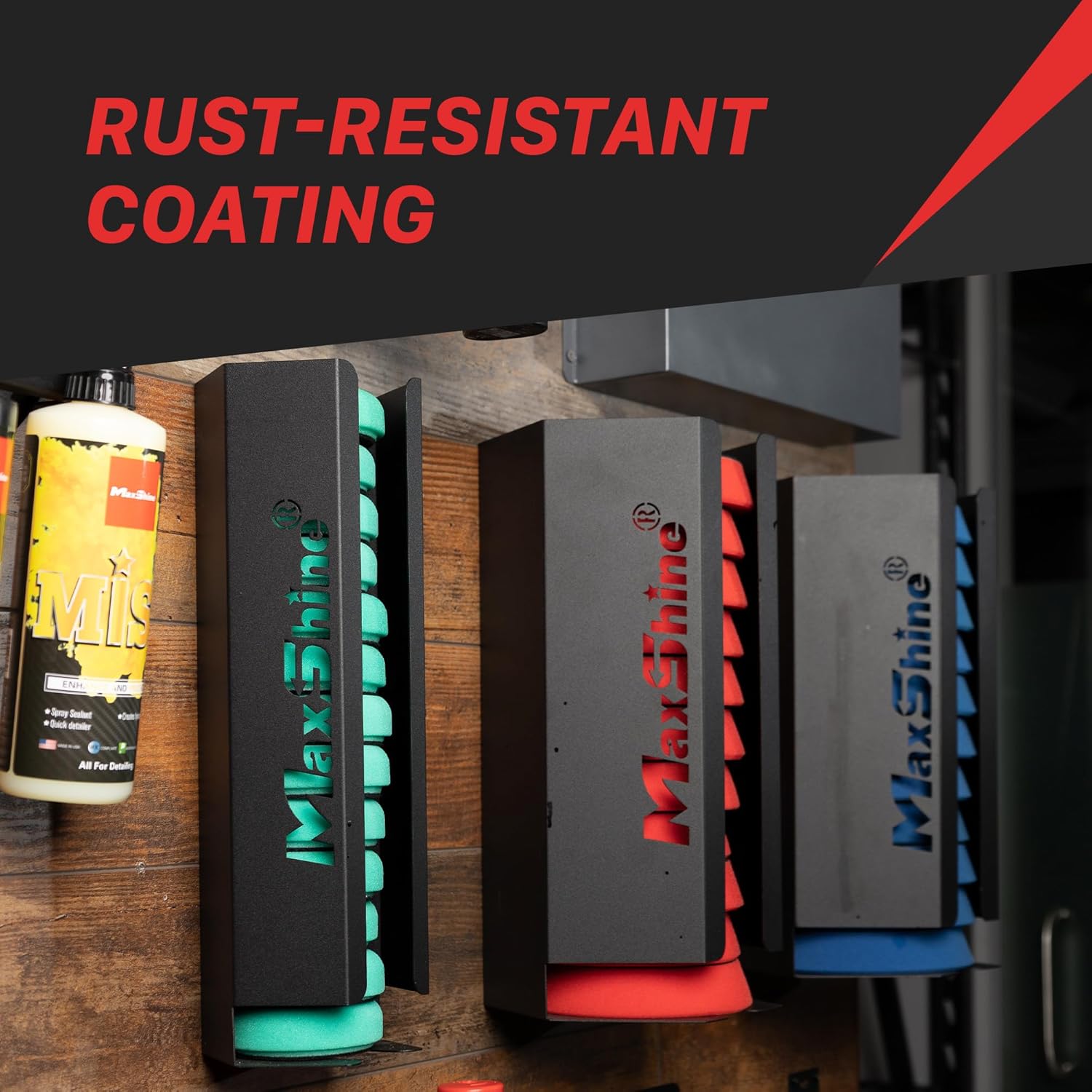 Maxshine Universal 5” Foam Pads Holder - Wall-Mounted Organizer for 12+ Polish Pads, Space-Saving Storage for Garage & Mobile Detailing, Durable & Anti-Corrosive, Professional Car Care Solution