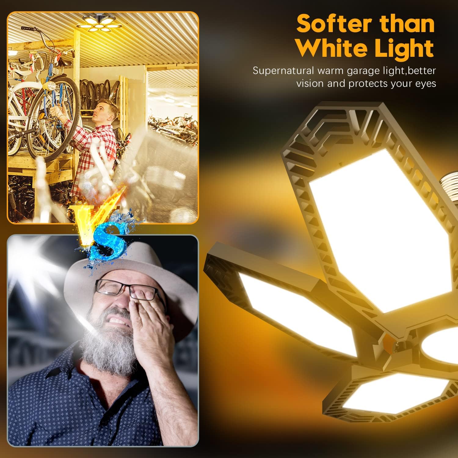 - 【Installation and multi-scene use】Just open the package, screw in the E26/E27 lamp holder, install the garage light in garages, warehouses, studios, supermarkets, gyms, laundry rooms and other places. Quick installation can be achieved without the help of other people without tools, and it is turned on when it is time. It's time for a more energy-efficient life.
