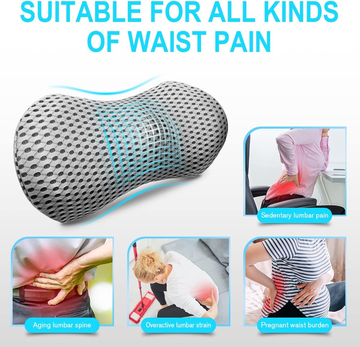 - Cushiony and Breathable: The 4D air-cool mesh on the lumbar pillow cover is highly breathable for comfortable contact. Also, the quality memory foam inside absorbs shock during driving and perfectly fits the human spine curve and offers cushion & comfort to your waist no matter you sit or lay.