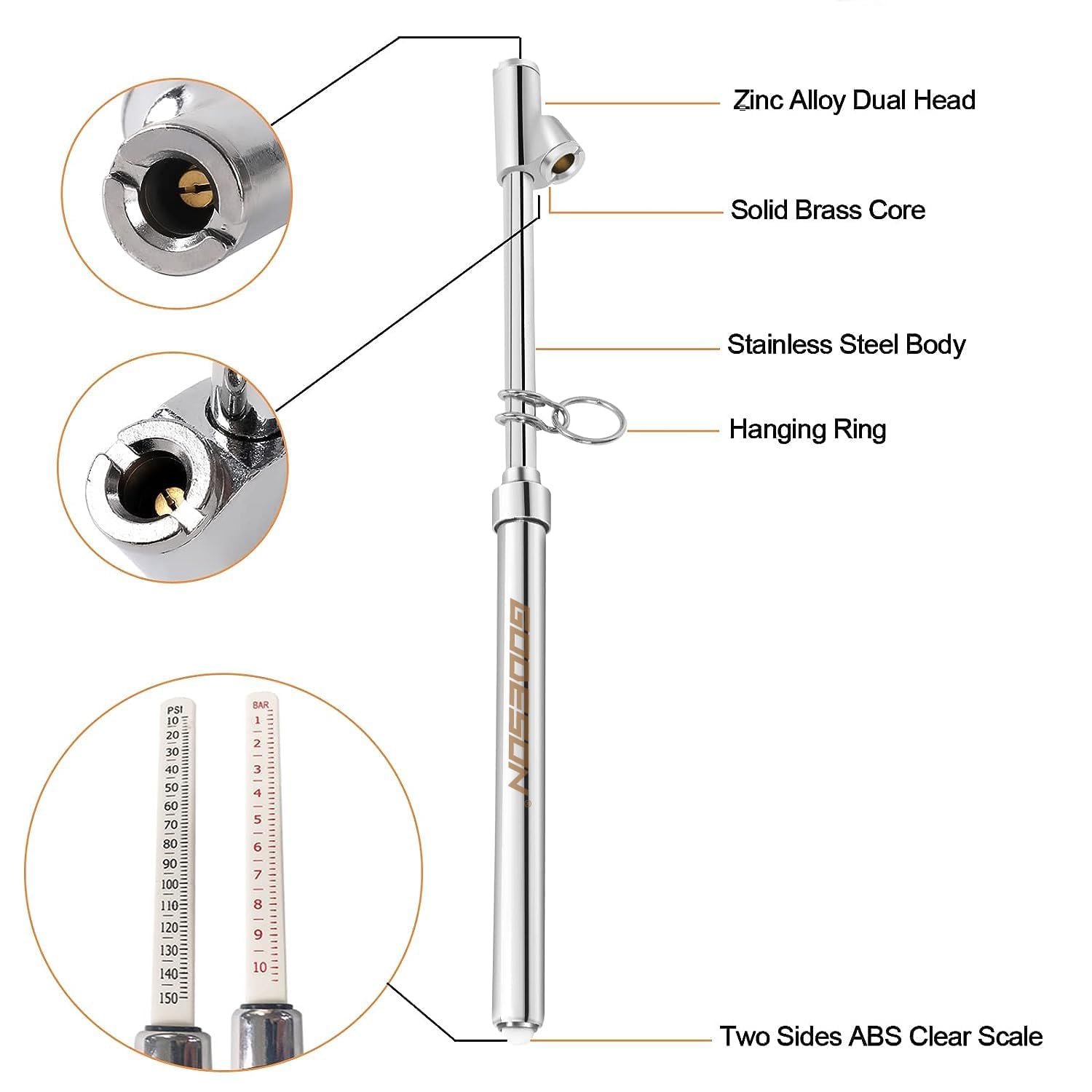 GODESON Dual Head Tire Pressure Gauge,Heavy Duty Pen Tire Gauge Range 10-150PSI; 1-10Bar. Dual Head Truck Air Pressure Gauge…