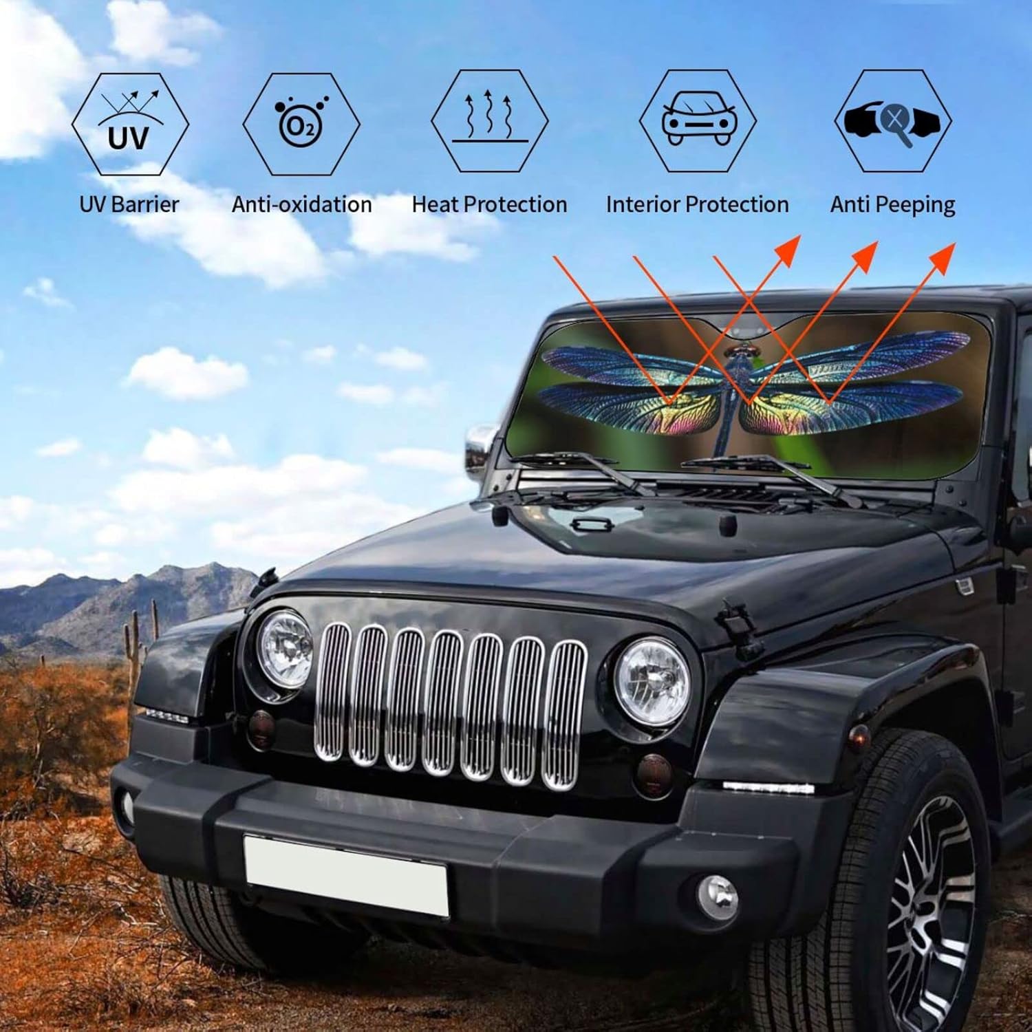 Dragonfly Car Windshield Sunshade Front Window Sun Visor Protector Foldable Shield Cover for Truck SUV