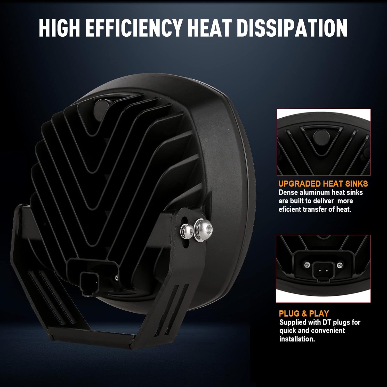 - ăHigh standard waterproof gradeăLED Off Road lights conform to IP68 and IP69K standard. Round offroad lights applied military breather design to prevent condensation and fogging. Lengthen the product life. Balance offroad lightsâ differential pressure to achieve thermal balance is attained. Let the sealed lamp beads have better heat dissipation. Enhance the usage of reliability in extreme environment.