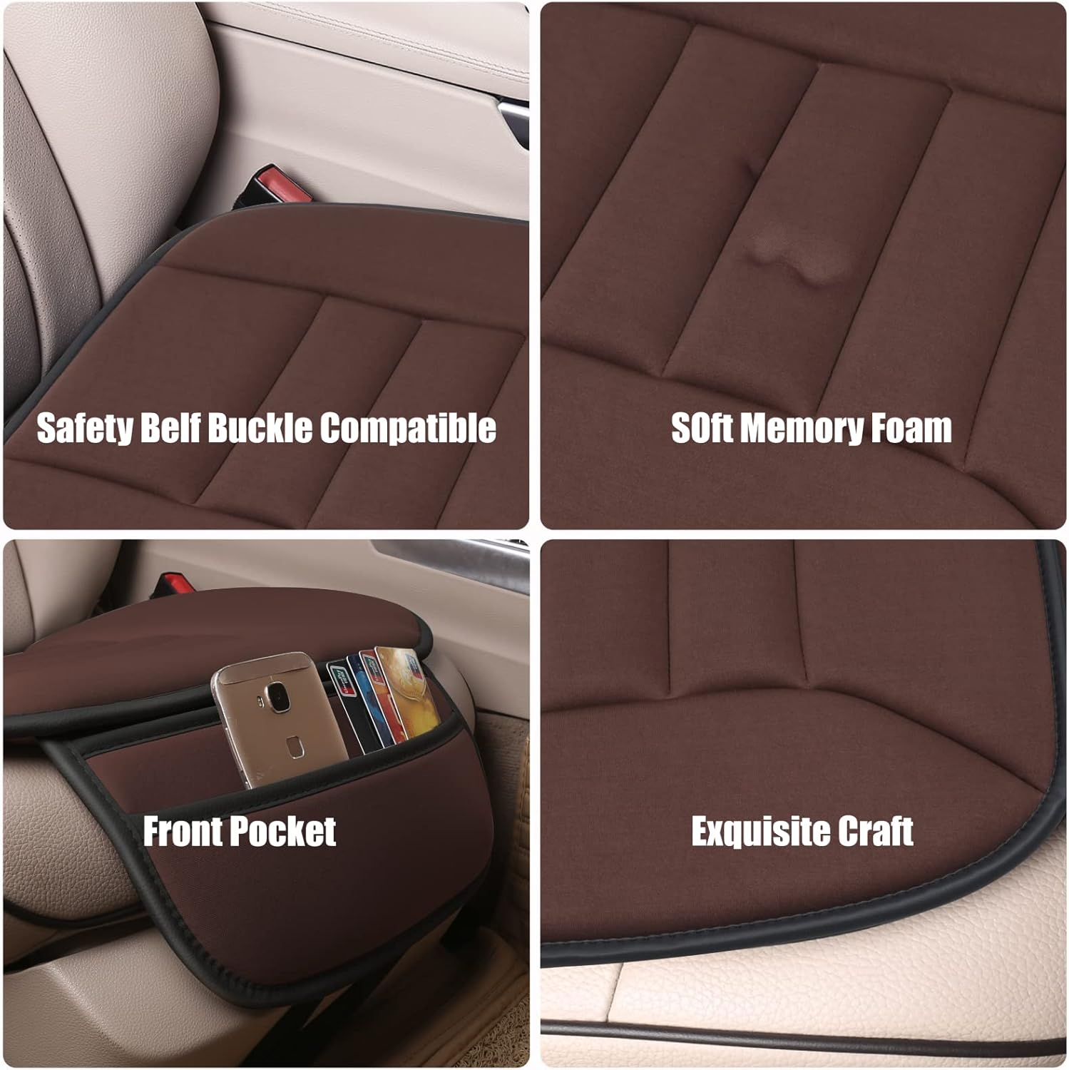 Premium Car Seat Cushion, Driver Cushion with Comfort Memory Foam & Non-Slip Rubber Bottom, Car Seat Pad Works with 95% of Vehicles and Office Chair or Home (Brown)