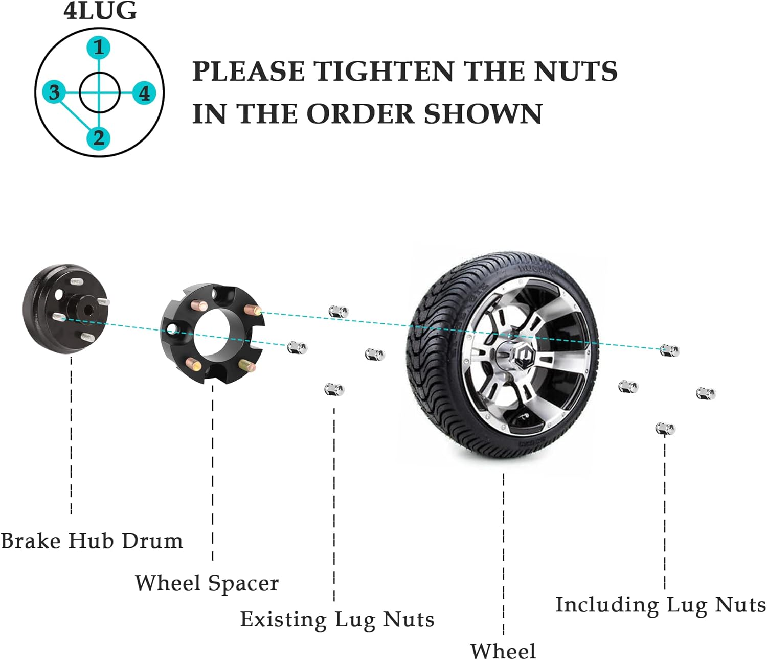 - 2 Inch wheel spacers for Yamaha, EZGO & Club Car golf cart, add 4 inches to the wheel axle track to allow for larger, wider or higher traction tires/rims/wheels and a more aggressive look