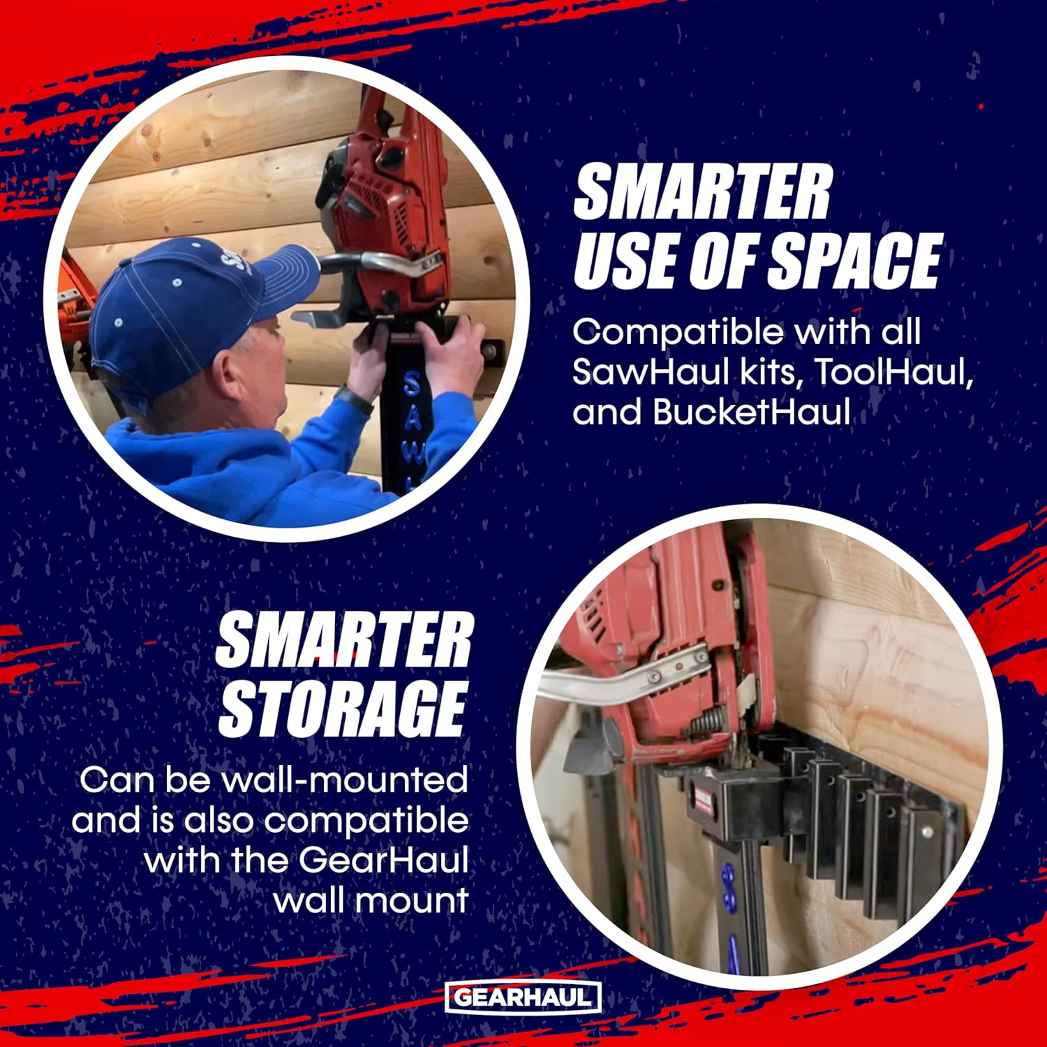 - SMARTER STORAGE. The Sawhaul saw rack can be wall mounted and is also compatible with the GearHaul Wall Mount--keeping your tools off the floor!