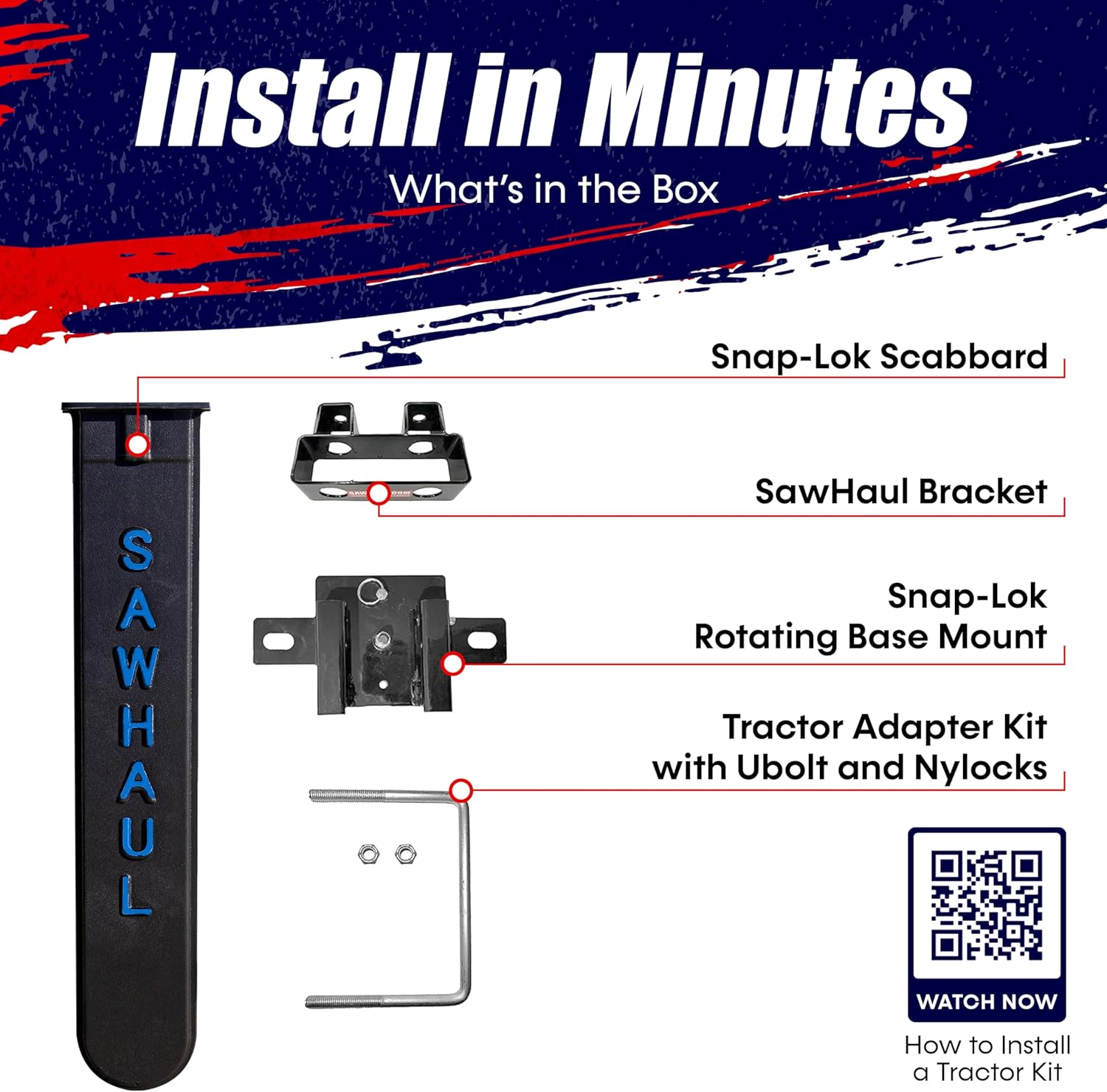 - PROTECT YOUR SAW AND YOUR TRACTOR. Transport with peace of mind using the SawHaul chainsaw mounting bracket, designed to safeguard your chainsaw and tractor from accidental damage. This chainsaw scabbard ensures secure storage during transit, minimizing wear and tear while reducing costly repairs. Also lockable with our specialty designed Commando Lock. (sold separately.)