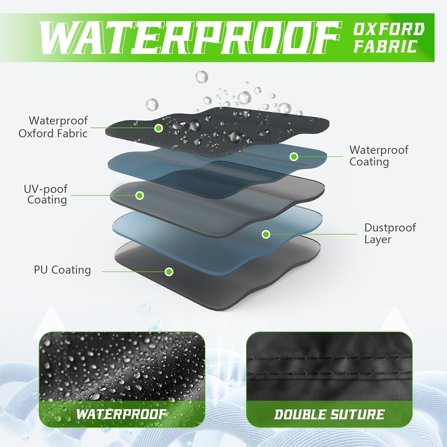 - Heavy Duty Oxford Fabric: Made of 210D premium polyester fabric, lightweight, super soft and designed with double stitching to be more waterproof than ordinary materials.Keeps your motorcycle completely dry and clean, even in the rain