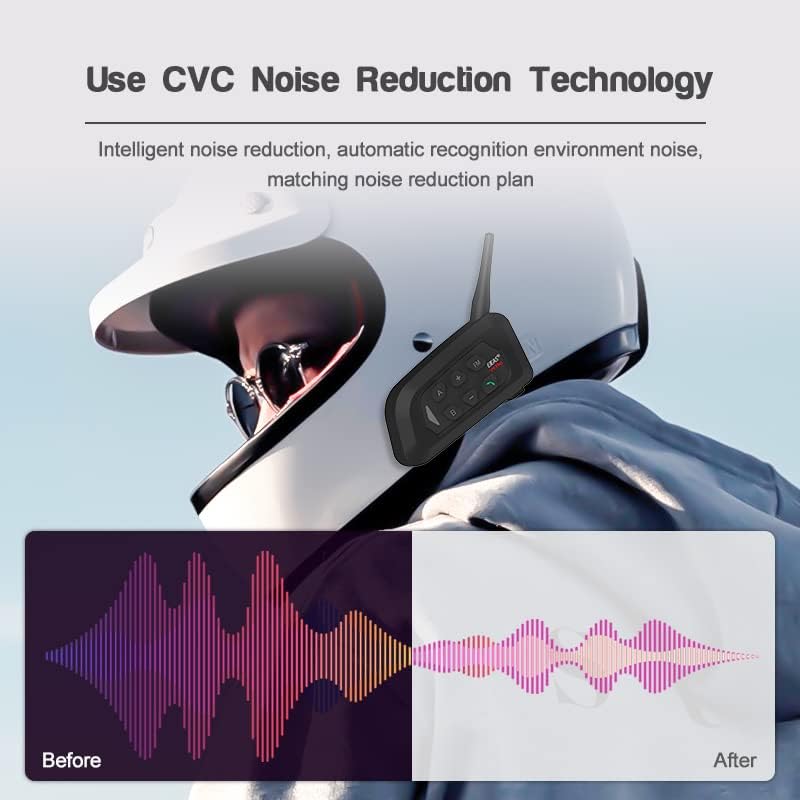 - Advanced Noise Reduction Technology: With improved CVC noise cancellation technology, it reduces surrounding wind and background noise. You are allowed to enjoy Bluetooth stereo voice with high definition sound quality during riding at a high speed.