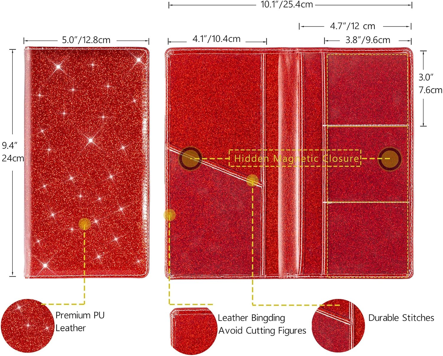 TOURSUIT Car Registration and Insurance Card Holder, Vehicle License Document Glove Box Compartment Organizer, Interior Car Accessories for Women Men Teens (Glitter Red)