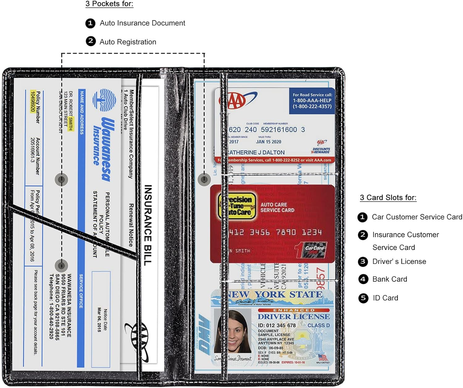 - 👁️Quick Accessible: Inside the car insurance and registration card holder, the clear inner material makes you easy to find documents when you open it up, you can see exactly what they are and quickly show them when asked, even no need to take the stuff out.