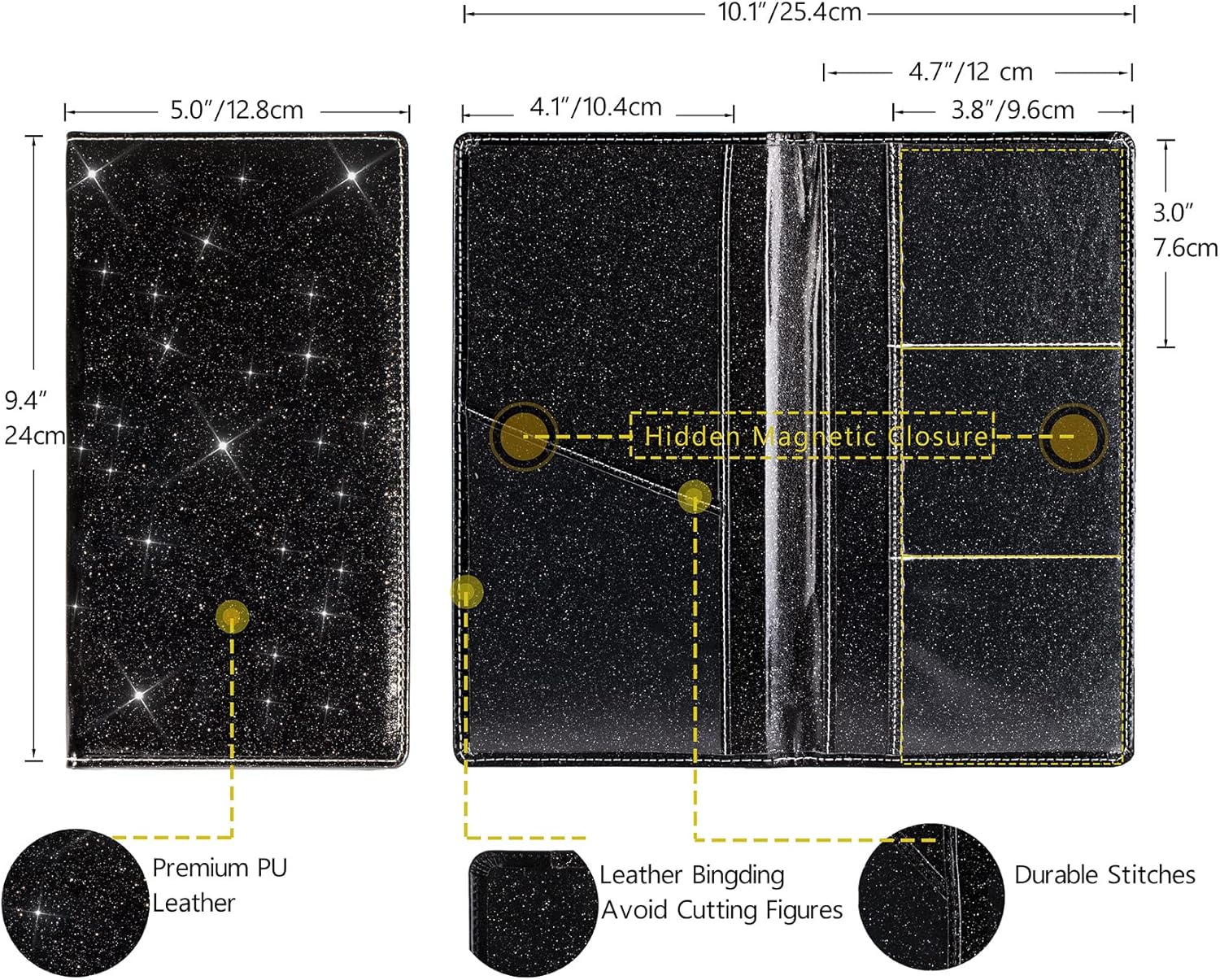 TOURSUIT Car Registration and Insurance Card Holder, Vehicle License Document Glove Box Compartment Organizer, Interior Car Accessories for Women Men Teens (Glitter Black)